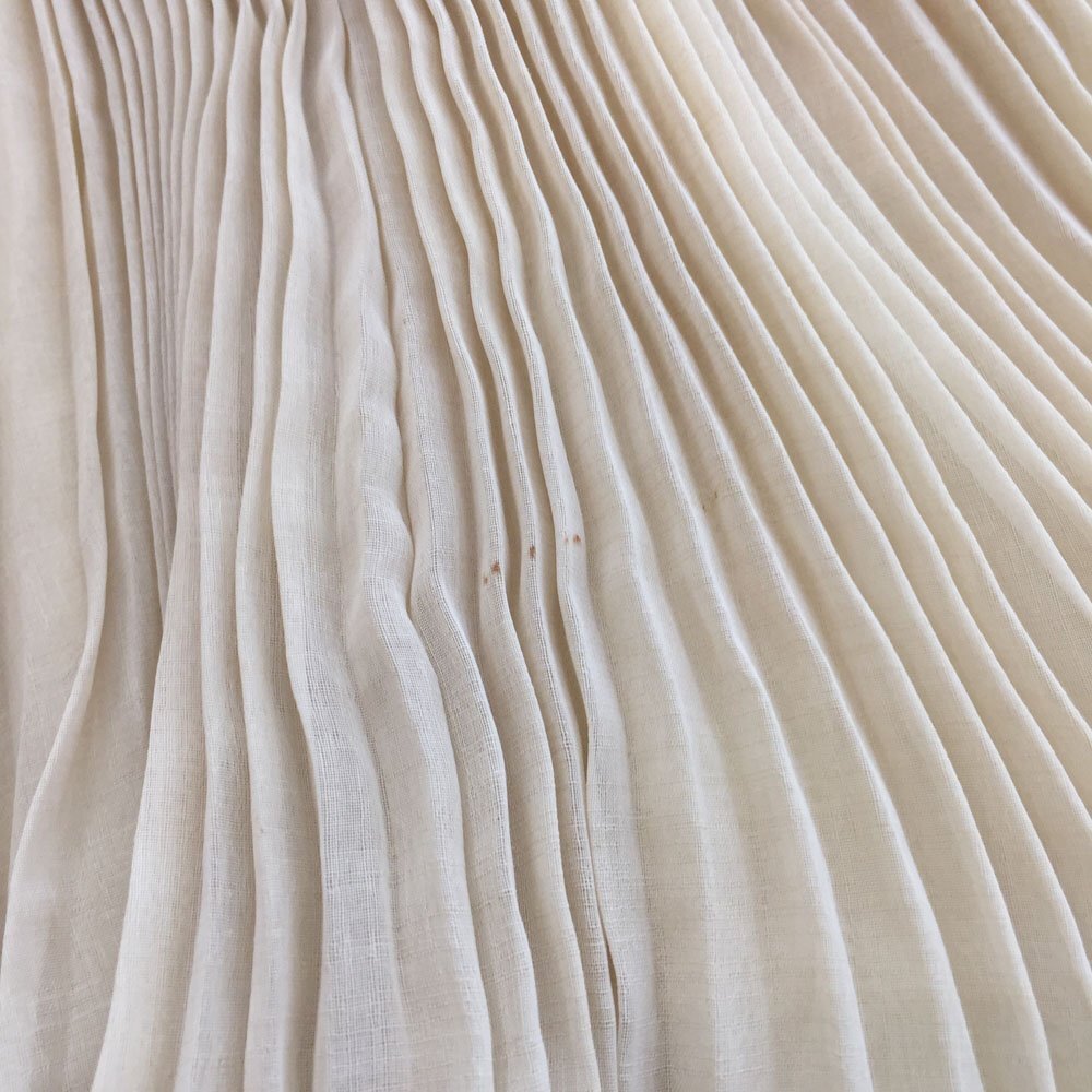 | コメント | コトゥーは、ハロッズなどのデザイナーを歴任した林秀三が、2007年に発表した日本のブランドです。株式会社三陽商会の取り扱いです。 ポリエステルシフォン生地のプリーツがティアードなった高級感のあるスカートです。春から秋まで長く活躍します。 未使用のお品です。経年があり、保管時に付いたわずかな汚れ(写真6)があります。目に付く傷や汚れは見当たりません。キレイです。ご理解のある方のご購入をお待ちしております。 |