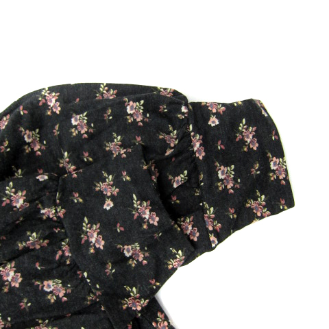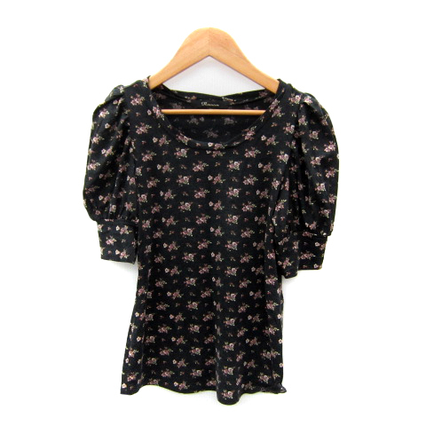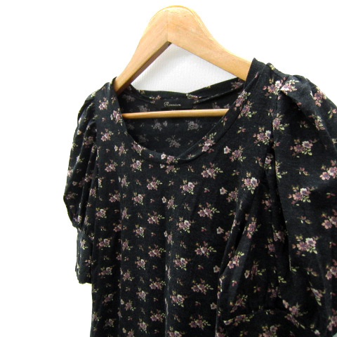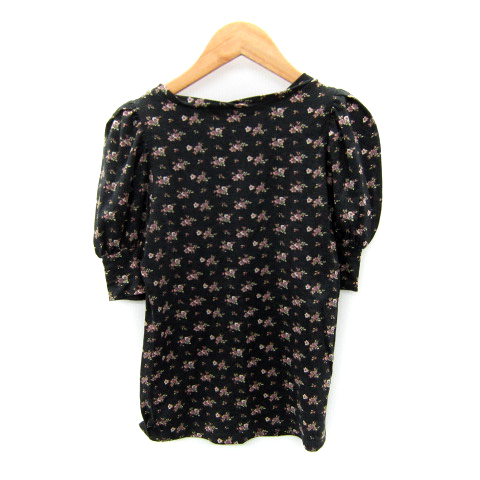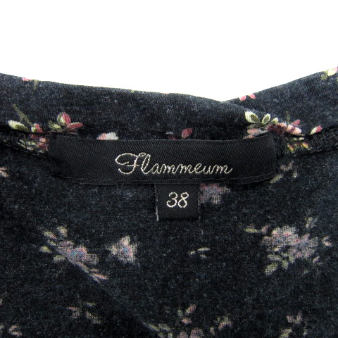 フラミューム Flammeum カットソー 五分袖 ラウンドネック 花柄 マルチカラー 38 M 黒 ブラック /SY20 レディース