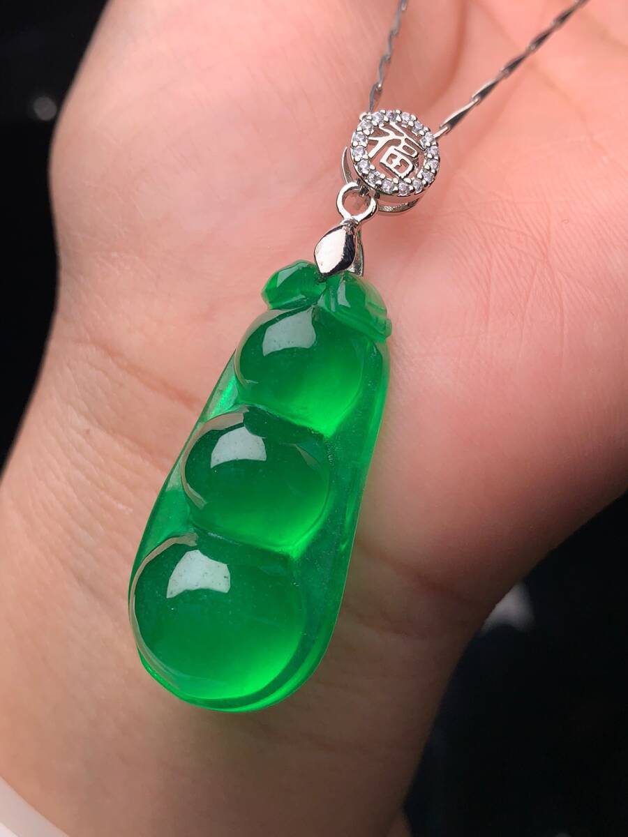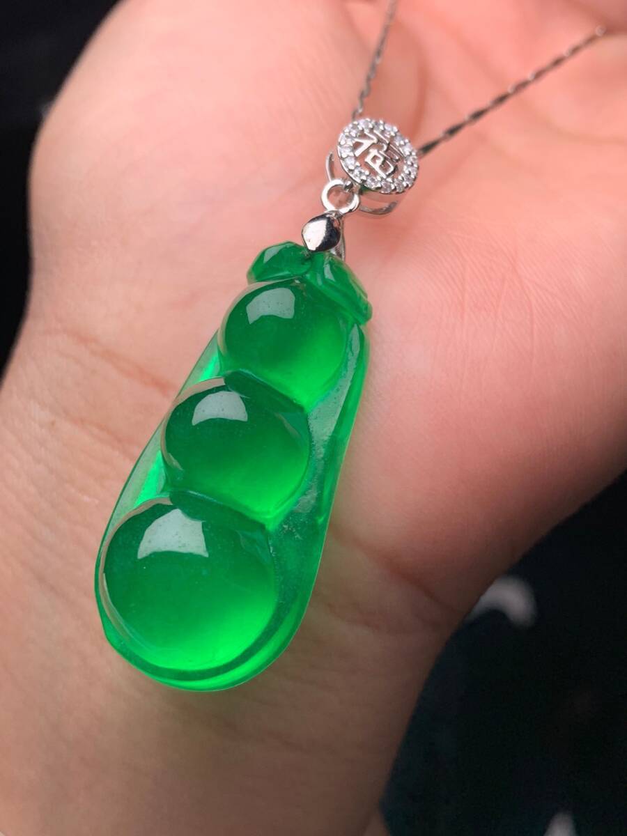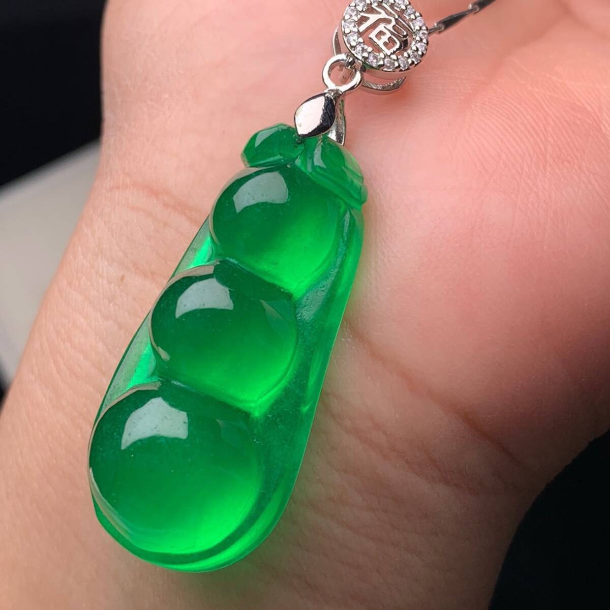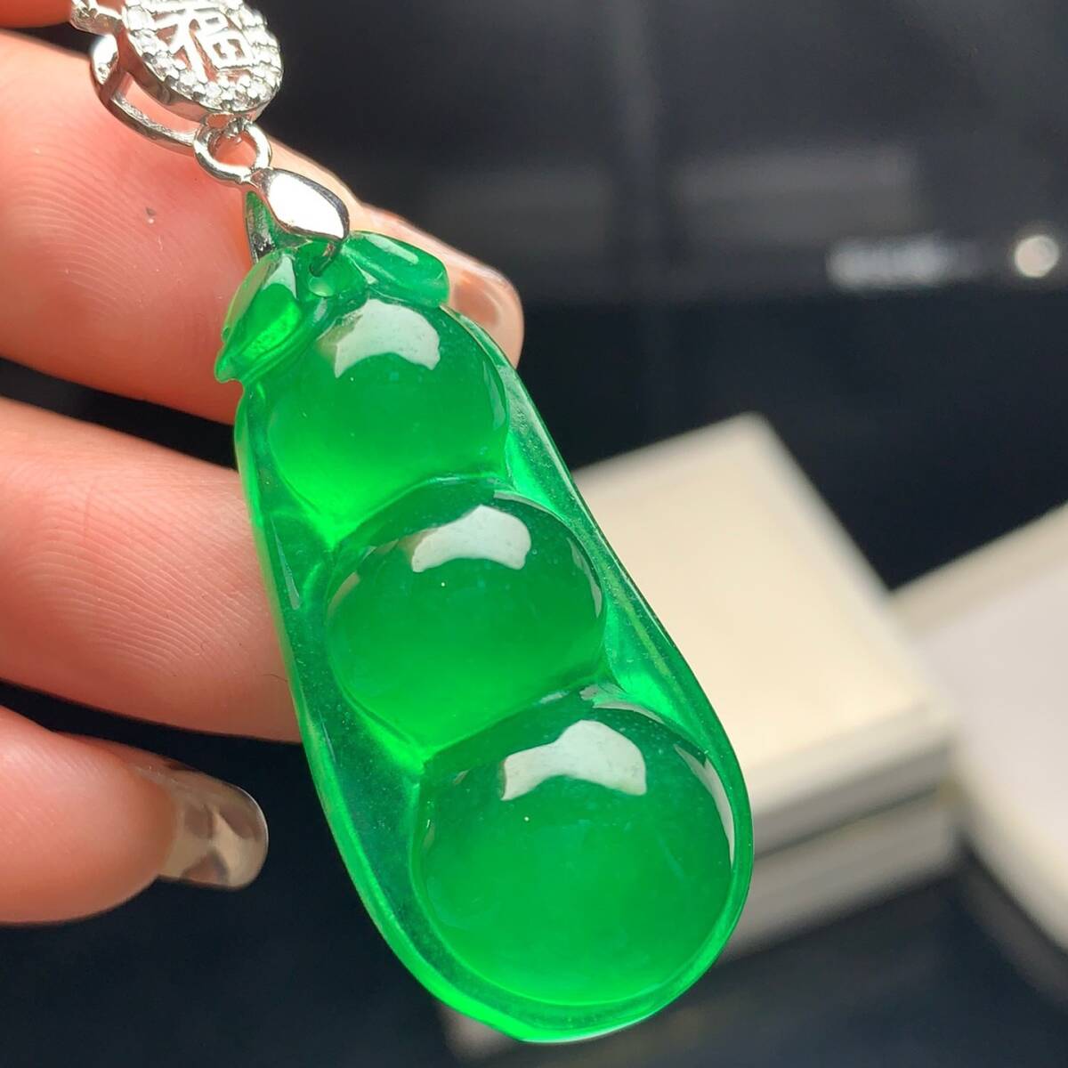 Aグレード翡翠彫 清時代翡翠冰種滿綠厚裝【福豆】 吊墜 首飾 時代物 古董品 骨董 旧家蔵出し 唐物 中国古玩 古美術品102