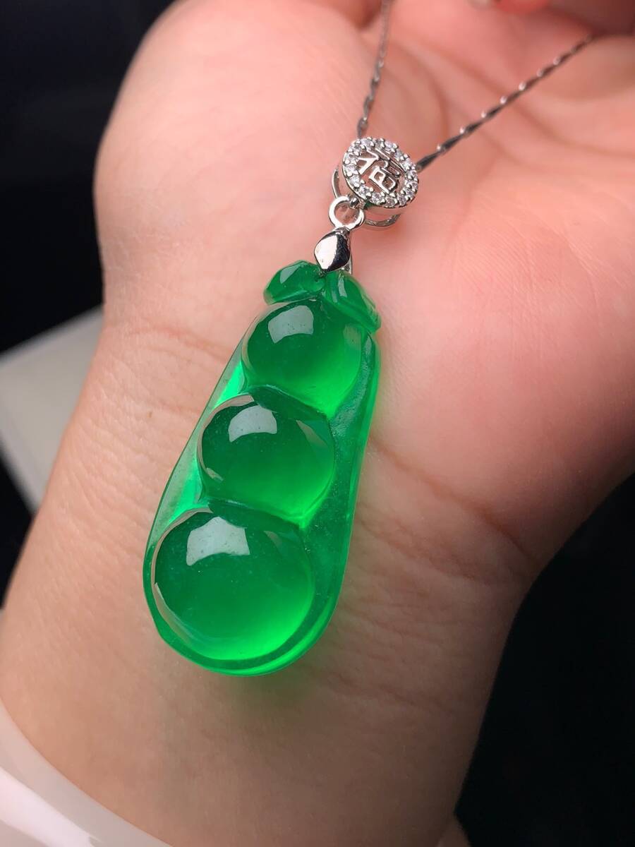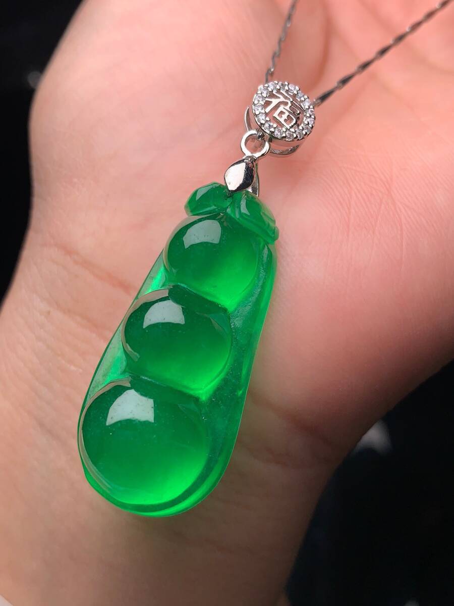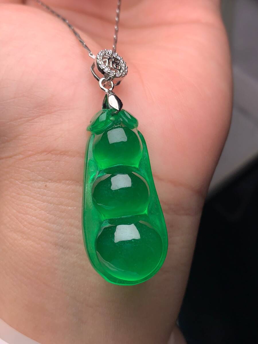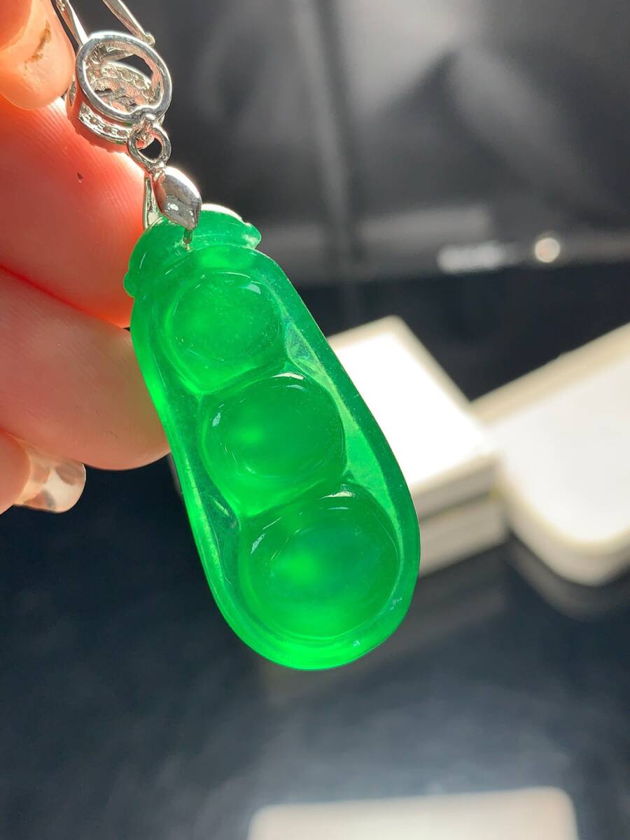 Aグレード翡翠彫 清時代翡翠冰種滿綠厚裝【福豆】 吊墜 首飾 時代物 古董品 骨董 旧家蔵出し 唐物 中国古玩 古美術品102