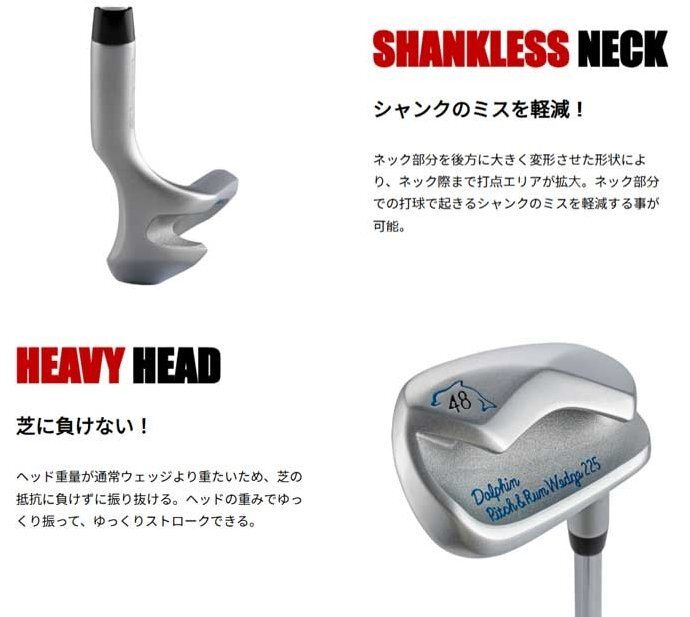 寄せワン連発!上げて転がす、ピッチ&ランのアプローチが楽になる。 ●上げて、転がす!:距離のあるグリーン手前の左足上がりの場面、ベアグランドからピッチエンドランを使いたい場面、ラフとエッジの境目で芝の抵抗を避け転がしたい場面。 ●抜けの良さを追求!:DW-123/DW-125Gで採用している「潜らない、刺さらない、跳ねない」クアッドソールXを採用。様々なライでも構えやすく、跳ね返りも防ぐため、トップのミスやベアグランドなど硬い場所でのヘッドが弾かれる状況下でもストレスなく構えて打つことが可能。 ●刺さらない!:リーディングエッジを厚めに設計し、芝に刺さることを予防。ザックリミスやザックリの不安からくるトップのミスが怖くなくなる。 シャンクのミスを軽減!:ネック部分を後方に大きく変形させた形状により、ネック際まで打点エリアが拡大。ネック部分での打球で起きるシャンクのミスを軽減する事が可能。 ●芝に負けない!:ヘッド重量が通常ウェッジより重たいため、芝の抵抗に負けずに振り抜ける。ヘッドの重みでゆっくり振って、ゆっくりストロークできる。 ●チッパーよりも使える!:フェース高さを一般的なチッパーよりも高く設計。一般的なチッパーのフェース高さでは、ラフなどボールが浮いている時にくぐってしまうが、幅広い場面で使うことができる。 ヘッド素材:軟鉄。 バンス角:トゥ -7° センター 0° ヒール -6° 日本正規品。 |