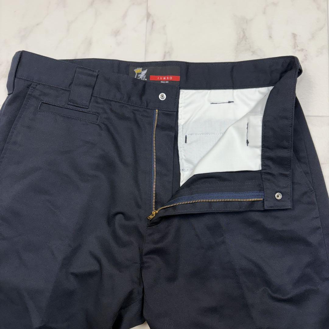 ハリ感のあるツイル素材と太幅のベルトループがコーディネートにワークテイストを与えてくれる。