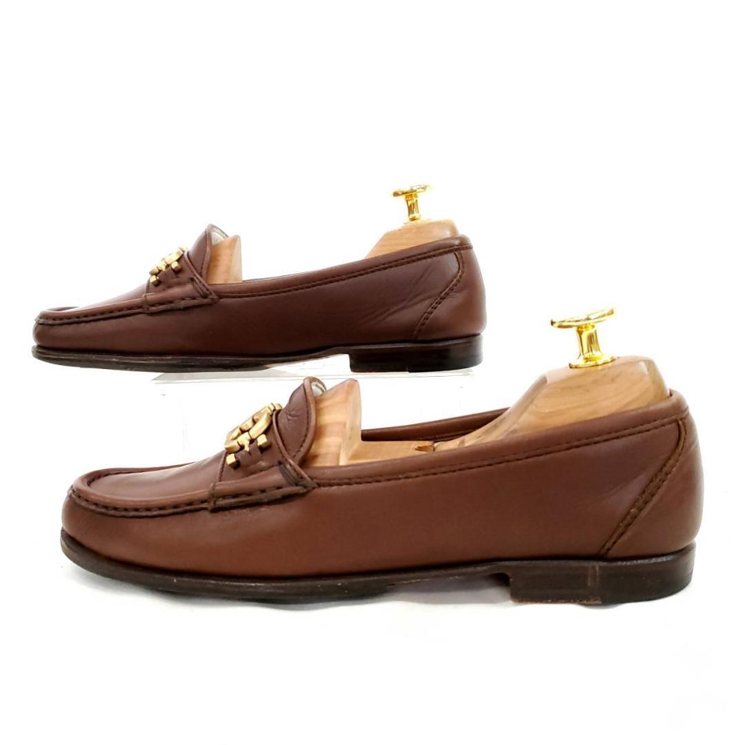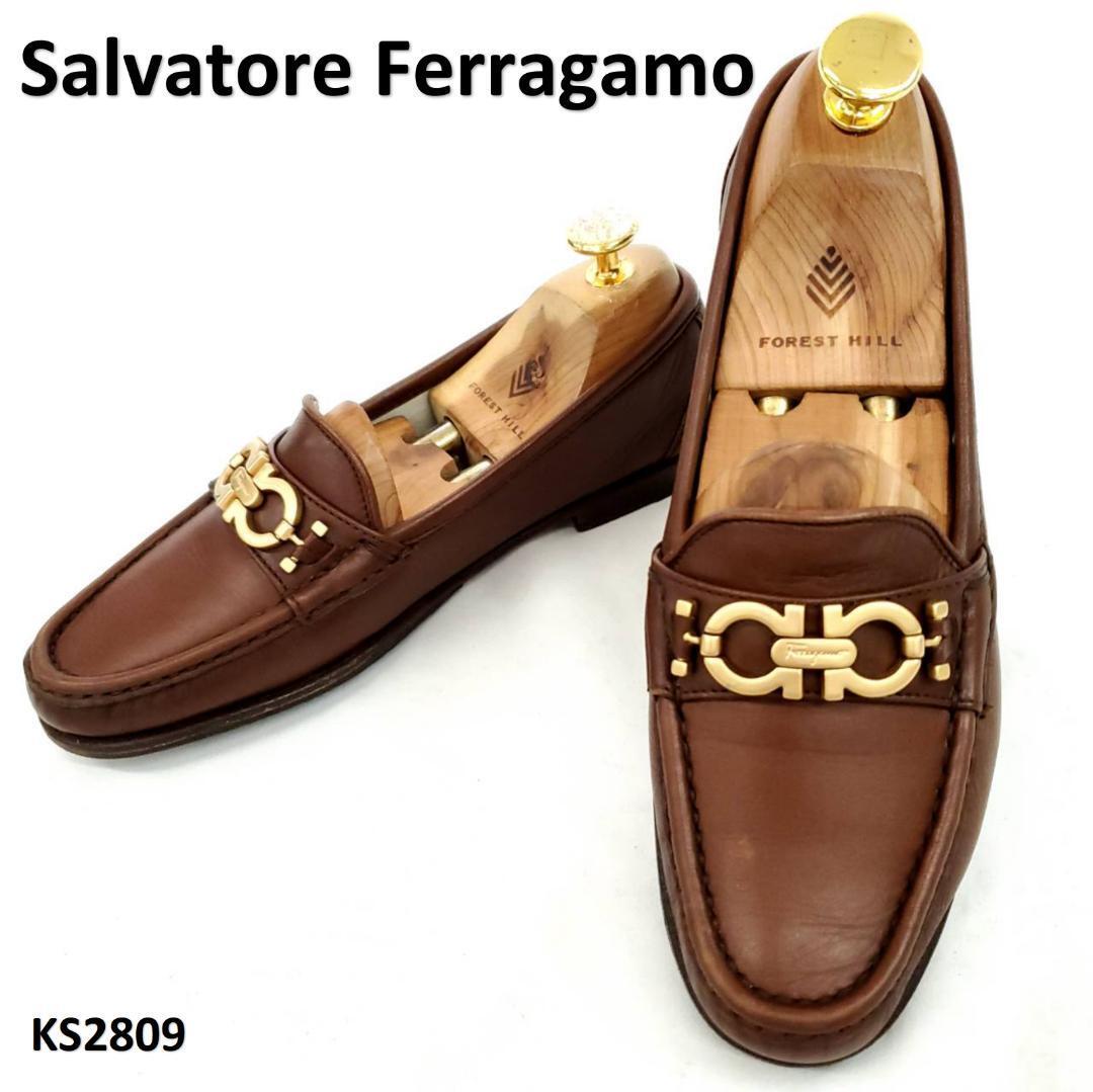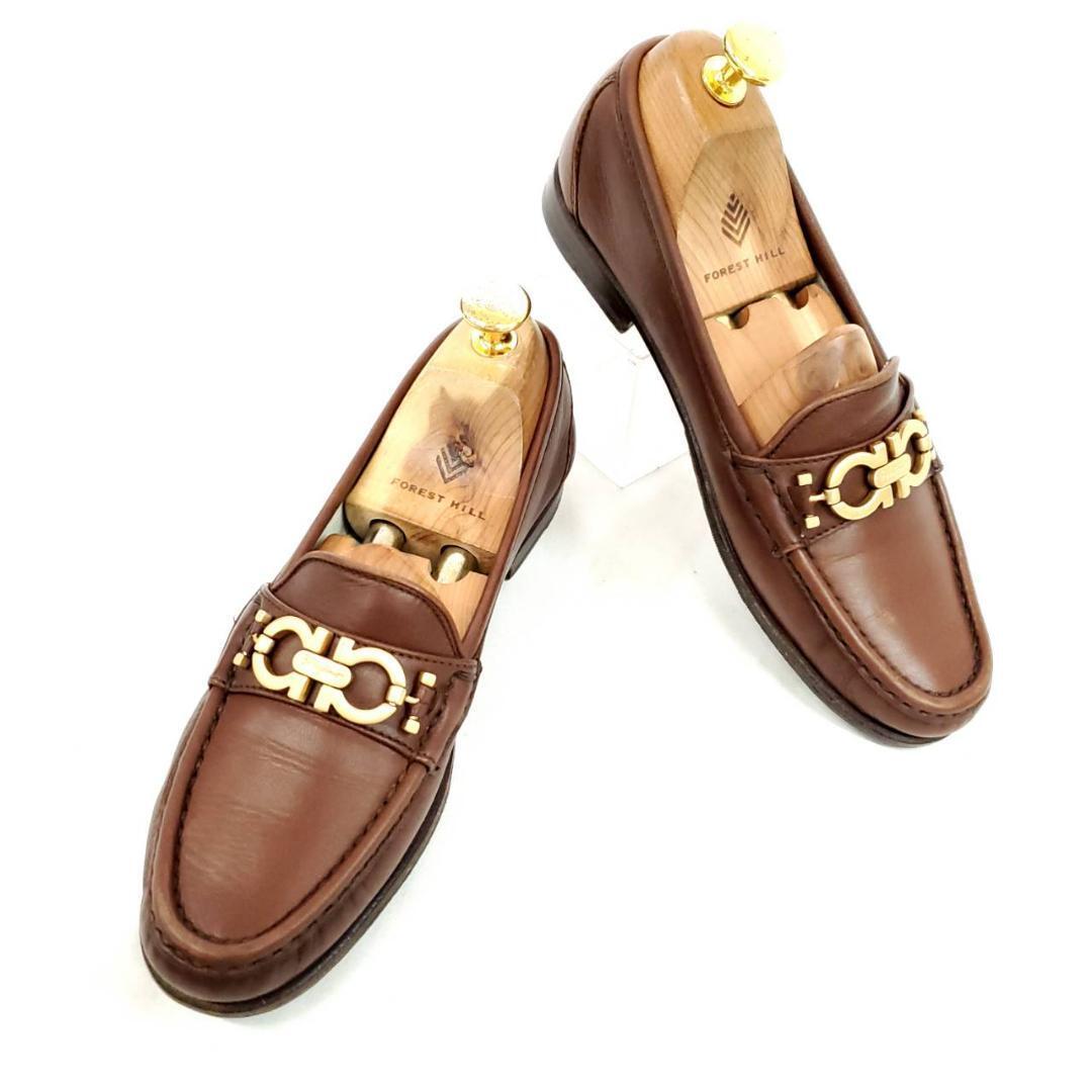 フェラガモを象徴する、ゴールドのダブルガンチーニ金具が存在感抜群な一足。