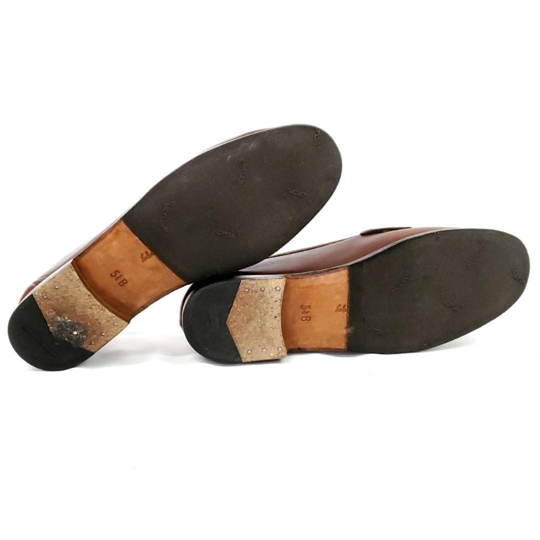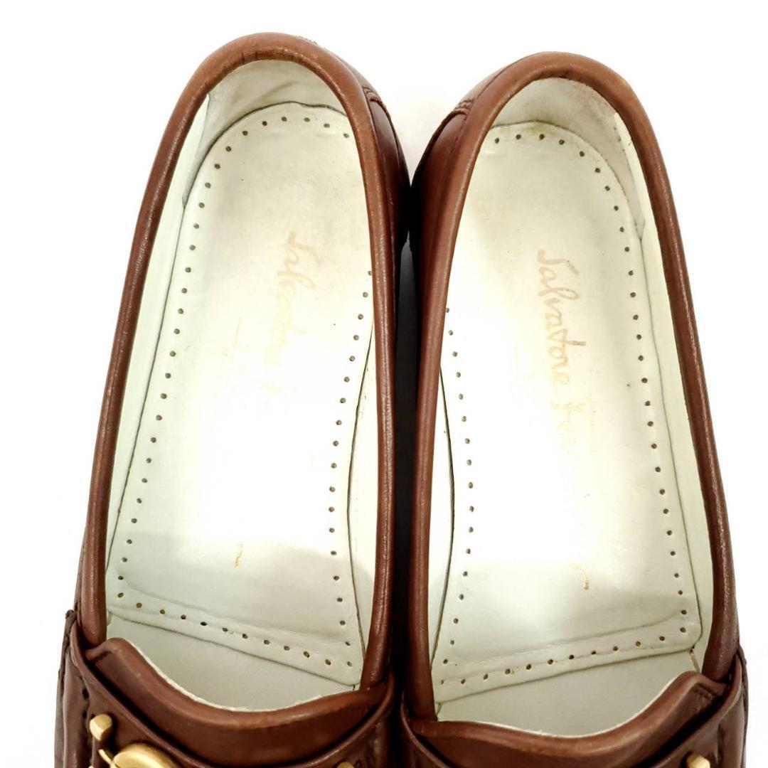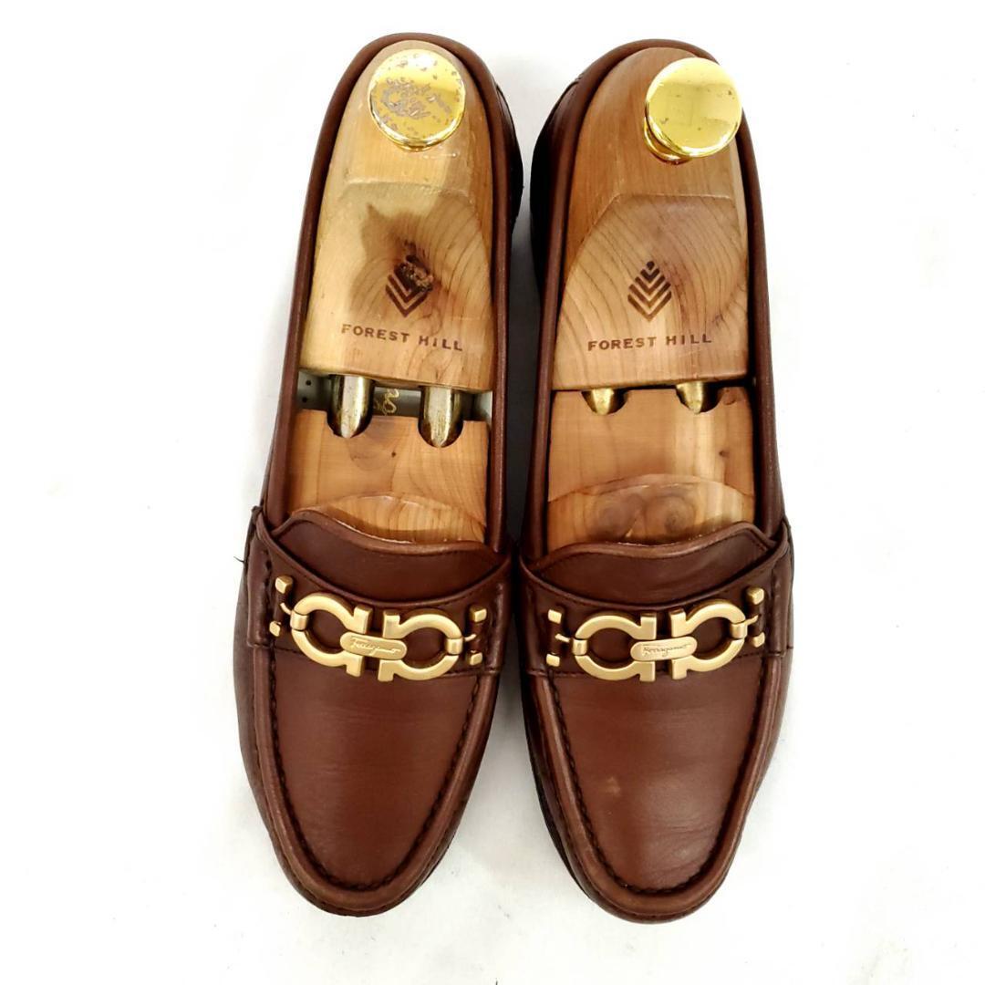 フェラガモを象徴する、ゴールドのダブルガンチーニ金具が存在感抜群な一足。