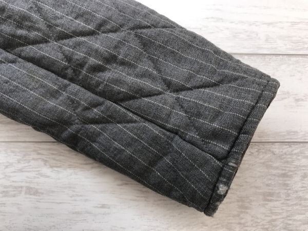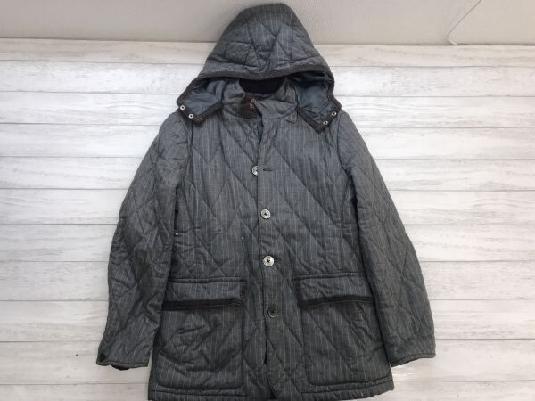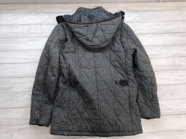 タケオキクチ TAKEO KIKUCHI 英国トラッド アメカジ ヘリテージ 古着 ストライプ キルティング 中綿ジャケット パーカー メンズ グレー です。