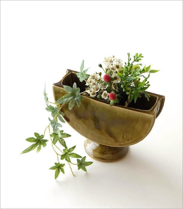 | とてもモダンな花瓶です 花入れ口は2箇所、陶器の棒で仕切ってあり 中央に丸い筒があります 花や葉など一輪でも、とても決まります 和陶器ベース 三(mkn8217) サイズ(cm):16.5x6.5x11 花瓶の口径:巾14×奥行4.5cmの変形 花瓶の深さ:約7.5cm 材質:陶器 生産国 : 日本(信楽) ※手作り商品のため僅かな寸法、色合いの違いはご了承下さい |