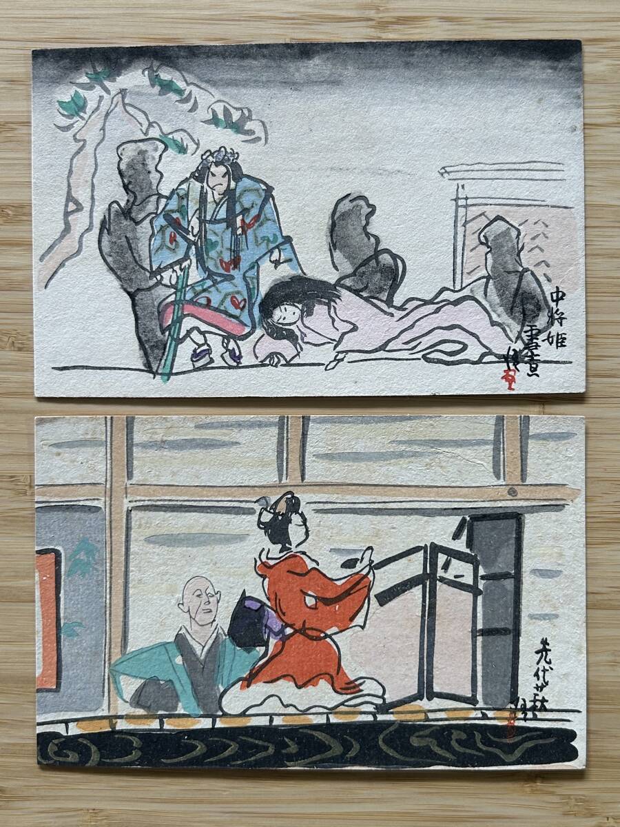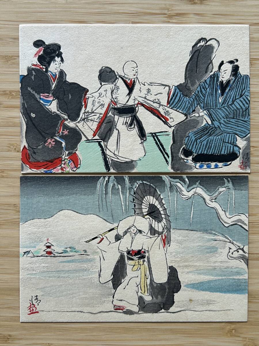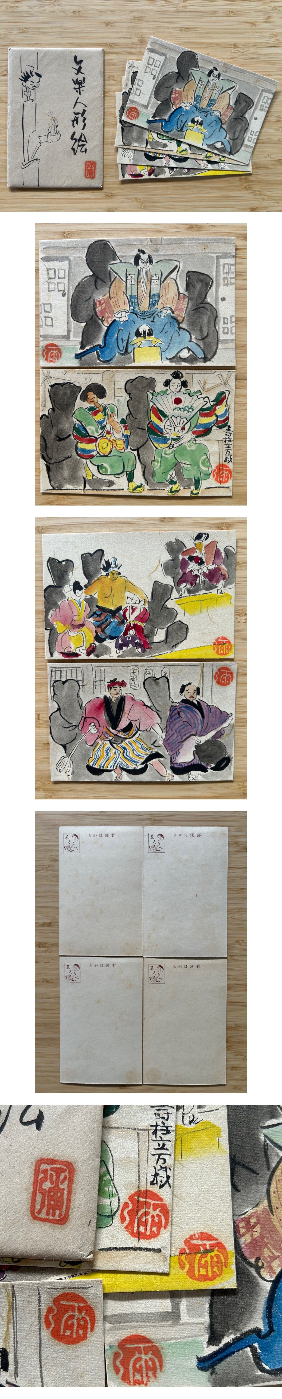 文楽人形絵4枚 / / 文楽みやげ6枚 // 木版絵葉書 (検) 歌舞伎 人形浄瑠璃 木版画 浮世絵 郷土玩具