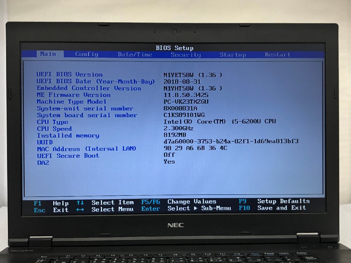 ジャンク/ NEC PC-VK23TXZGU Intel Core i5-6200U メモリ8.19GB ストレージ無し 【K22176】