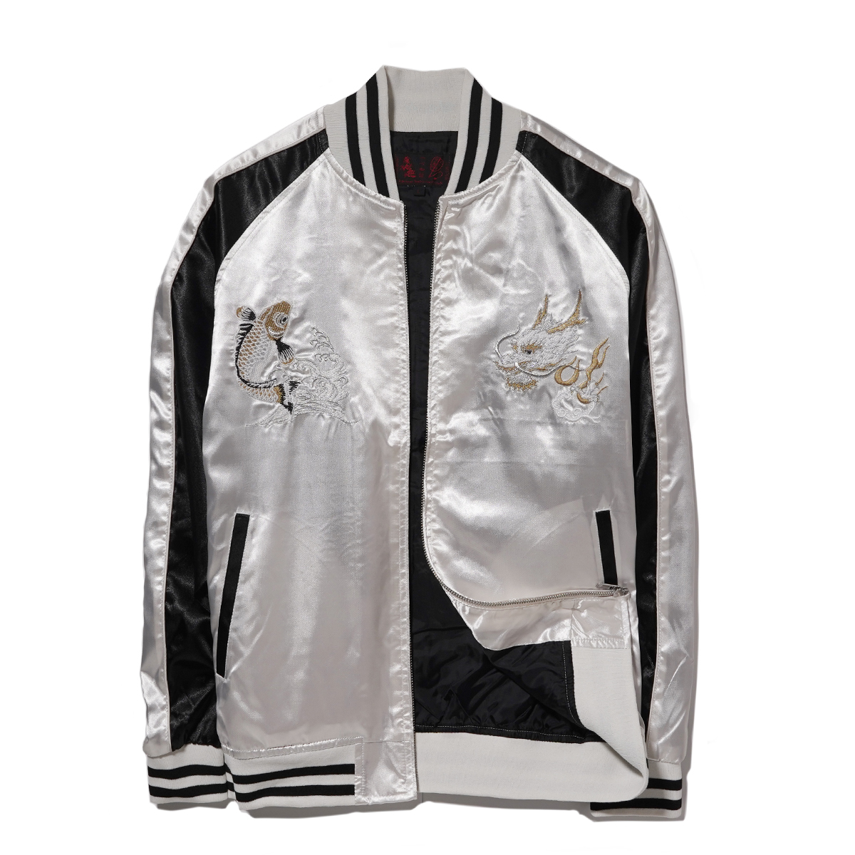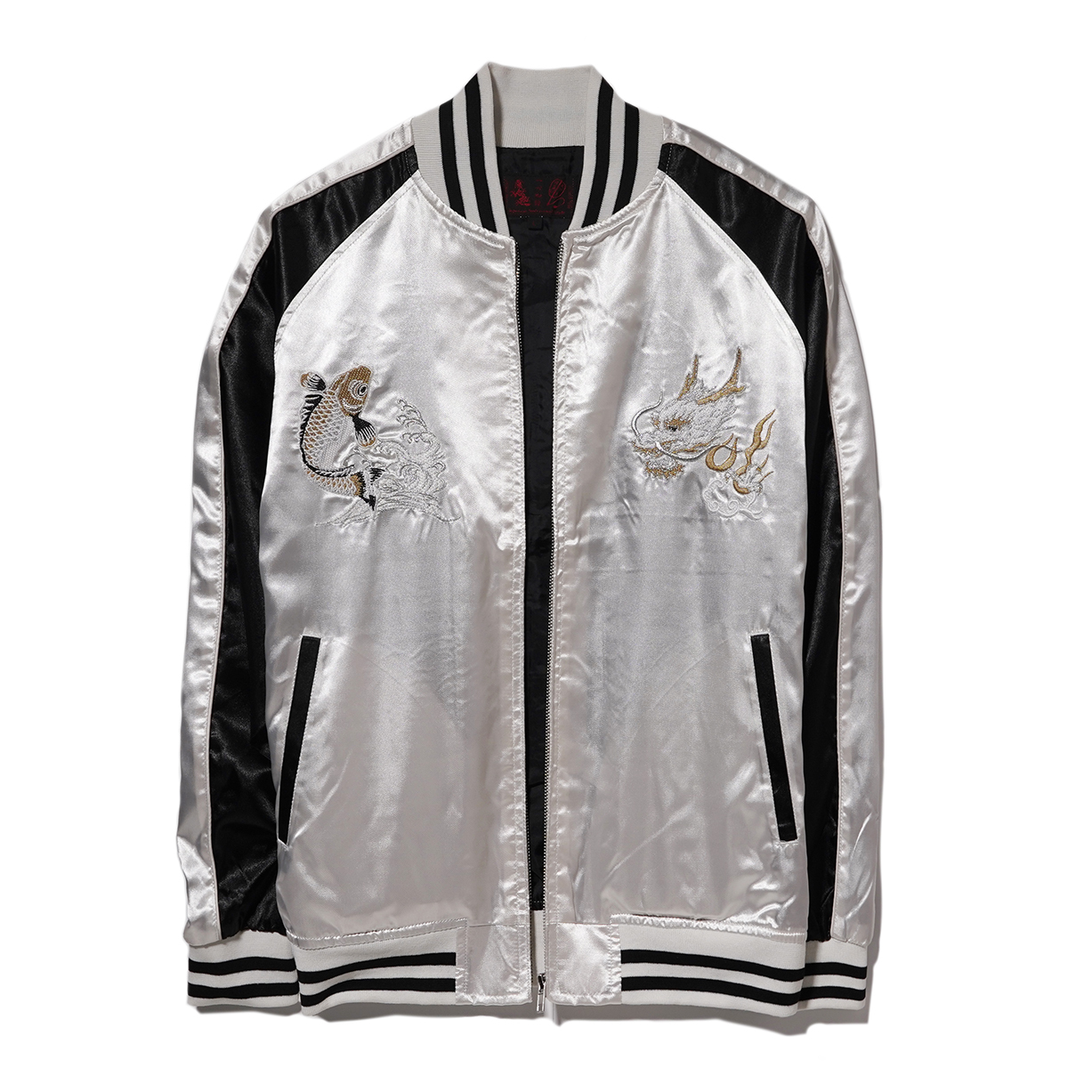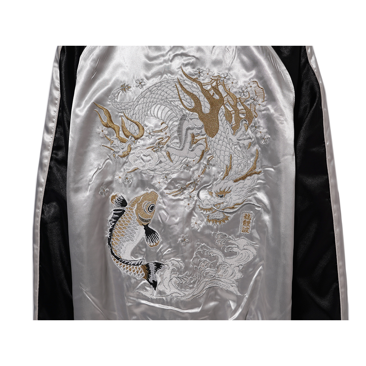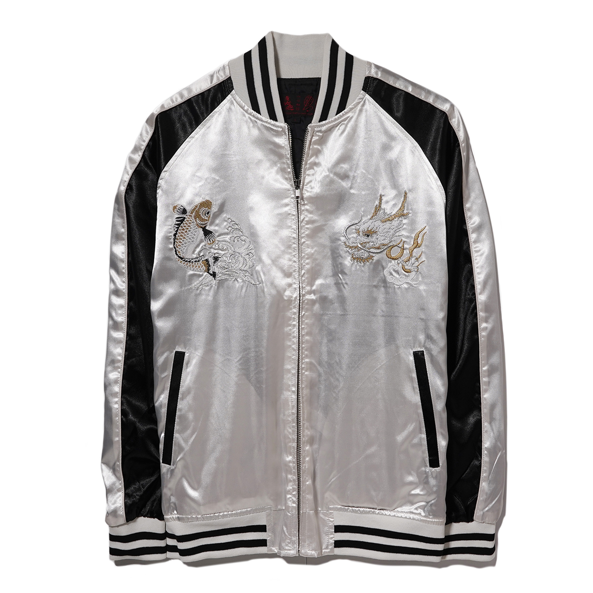 さらりと羽織れるストリート定番スカジャン。 程よい厚さとサラッとした高級感のあるサテン生地、 フロントとバックに施された丁寧な刺繍使いがポイントで、アメカジでは定番のスカジャンを現代っぽくタイトなサイズ感に。 ボディはカラー配色切り替えで仕上げた大人っぽさのあるデザインなど凝ったディティール。 これからの時期に最適、ライトアウターとして活躍してくれる1着。 左胸内側裏ポケットあり、中綿ナシ。 【カラー◆Color】 龍鯉波 / SILVER 【サイズ◆Size】 L 【寸法◆Size】 S size : 身幅51cm 肩幅(ラグランにより数値なし) 着丈59cm 裄丈80cm M size : 身幅53cm 肩幅(ラグランにより数値なし) 着丈61cm 裄丈82cm L size : 身幅55cm 肩幅(ラグランにより数値なし) 着丈63cm 裄丈84cm XL size : 身幅57cm 肩幅(ラグランにより数値なし) 着丈65cm 裄丈86cm 【素材◆Material】 ポリエステル 100% ※現物に近いカラーに撮影しておりますがモニターカラー設定、または印象によりカラー誤差があることをご理解よろしくお願い致します。 | ||