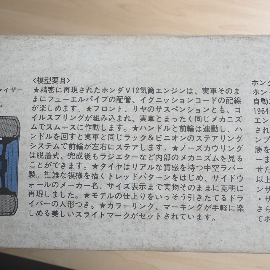 日本が誇るホンダの伝説的なF1マシンを、圧倒的な精密度と存在感で再現しています。
