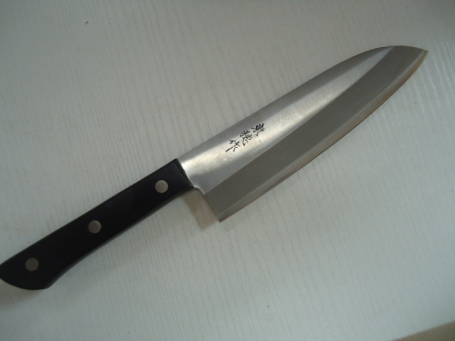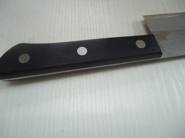 商品説明 | 訳アリ・・・ 鍛冶屋・金物転廃業に伴い【処分特価】 ステンレスにハガネ割込み 刃の部分は錆びます!切れます! 刃渡り165mm 両刃三徳 同梱は翌日終了分まで【まとめ依頼】のみ承ります 個別は承りません。 |