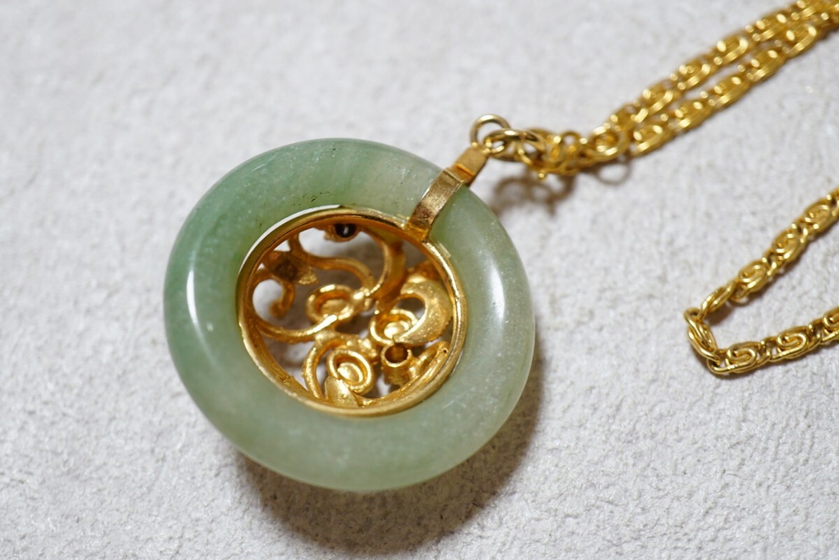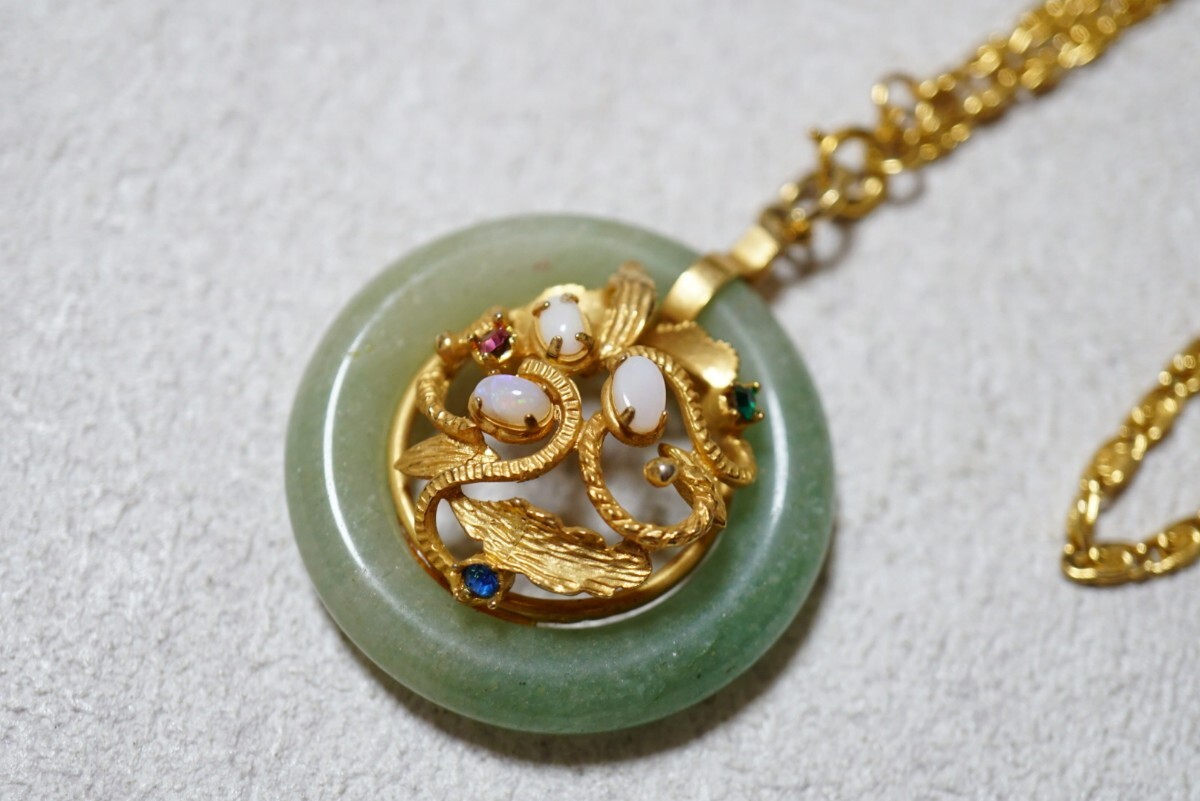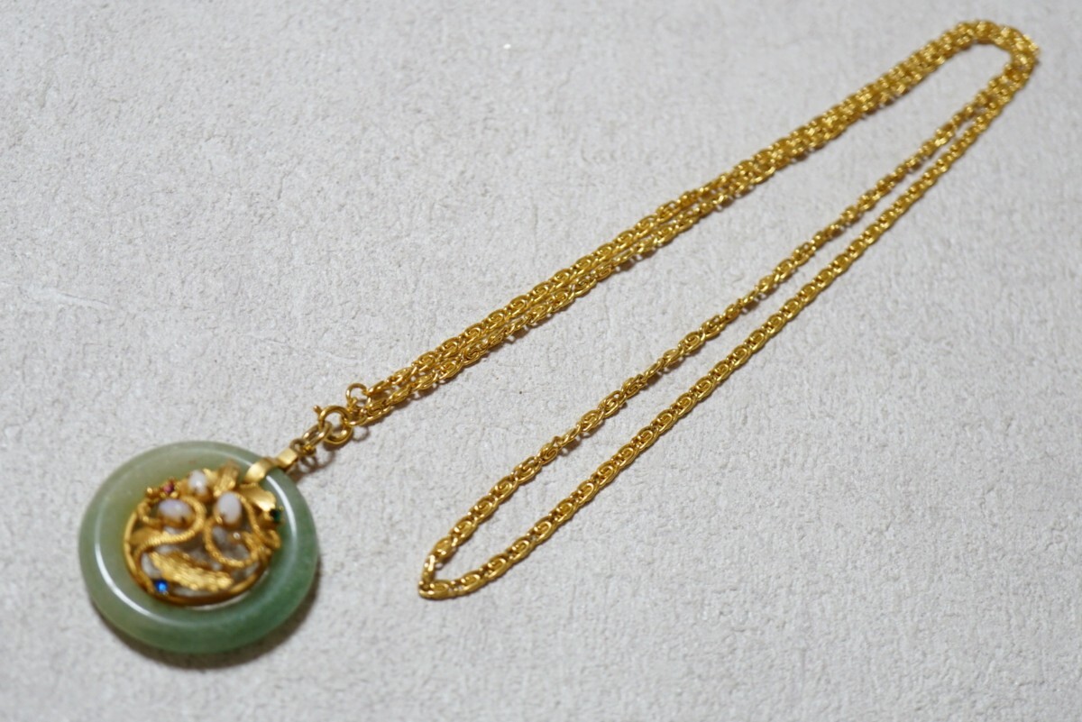 164 天然石 緑石 オパール ゴールドカラー ペンダント ネックレス ヴィンテージ アクセサリー 宝石 色石 カラーストーン 装飾品