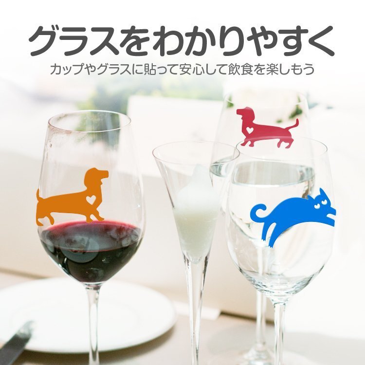 ◆ワイングラスマーカー 12枚セット シリコンシール 猫/犬選択可 繰り返し使用可能 ドリンクマーカー ワイングラスチャーム マグカップ 缶ビール 車 キャリーケースなどにも 【犬12枚】SSDM12S