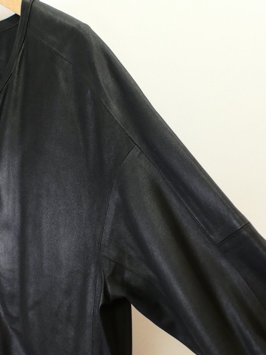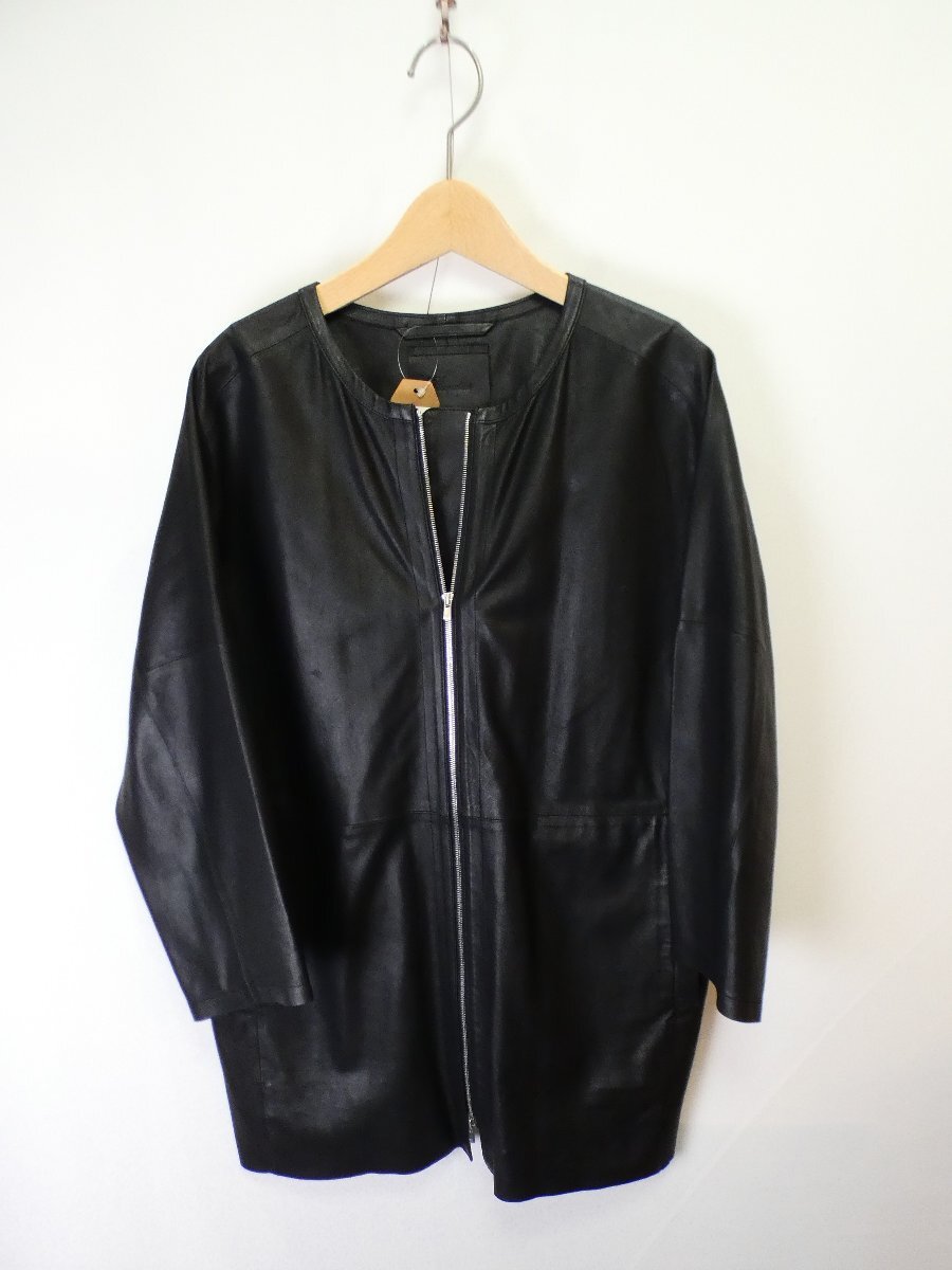 デザイン | ★【シルエット・着丈】ゆったりした 縦型 シルエット 腰下丈 ~やや長めの丈、 【襟】、ノーカラー、 【裏地の有無】裏地無し、(立体裁断) 【厚み】かなり 薄手 【フロント】、ジップ お袖 立体裁断 7分袖 |