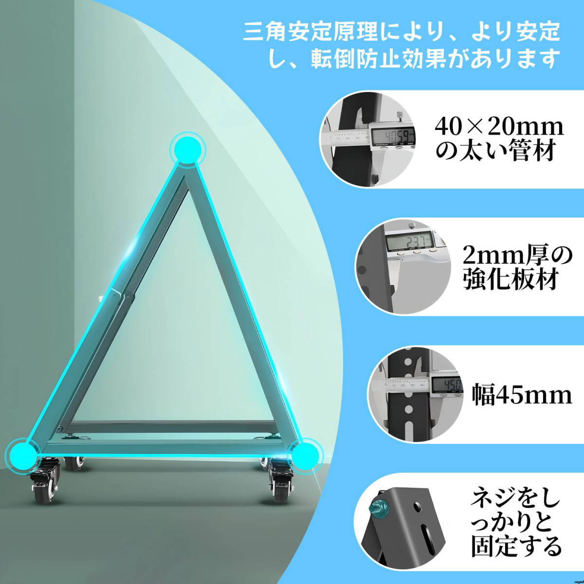 キャスター付きで360度自由に移動でき、前後のロック機能で安定して設置可能です。