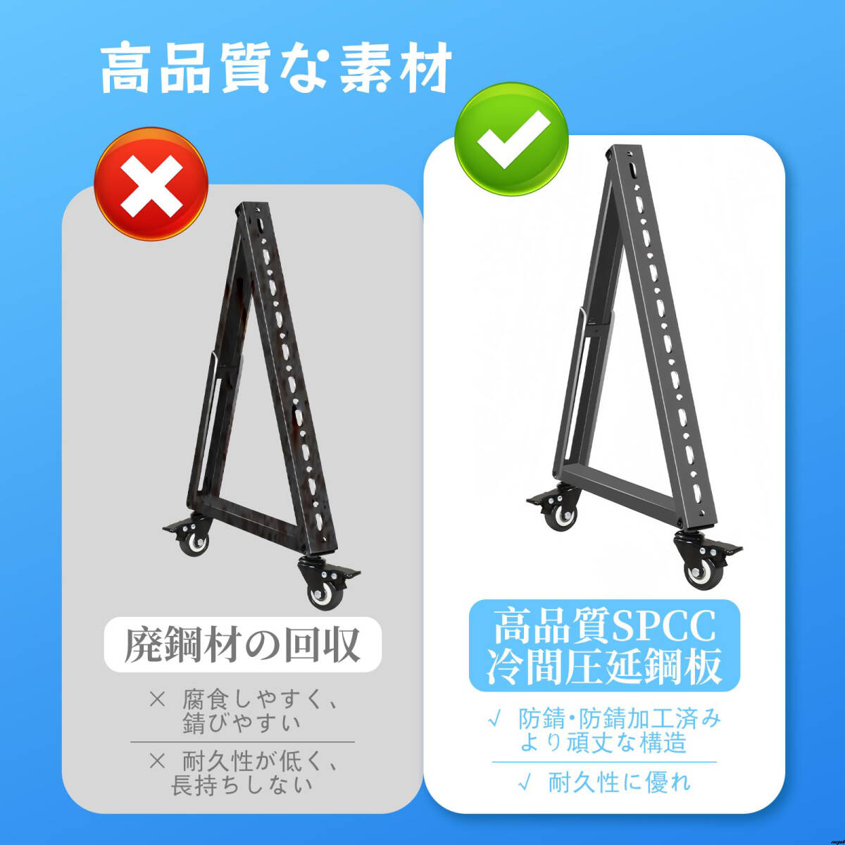 厚いブラケットと冷間圧延鋼管の採用で高い耐久性を実現し、安全にテレビを支えます。