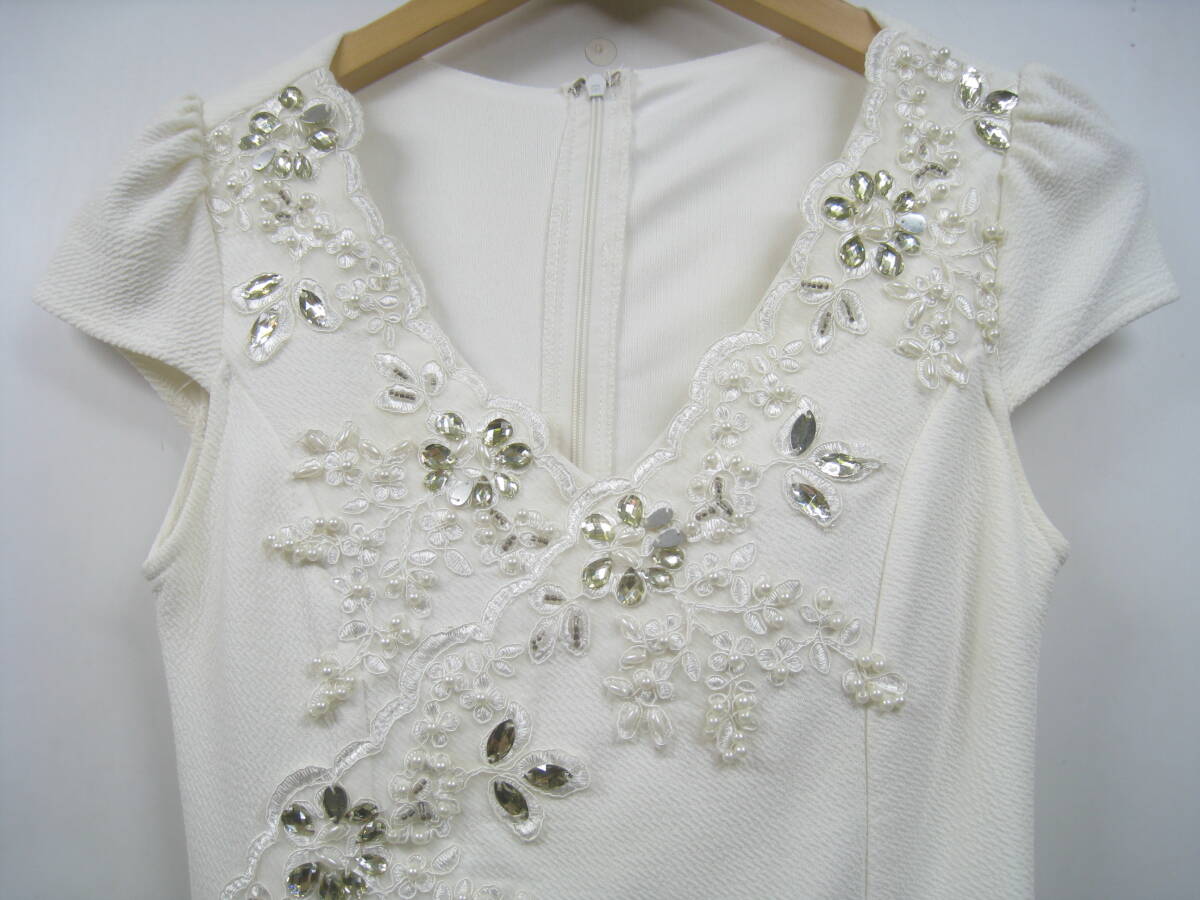 ドレス ホワイト ビジュー パール ビーズ レース キャバ嬢着用ドレス キャバクラ キャバドレス スナック ガールズバー クラブ ワンピース M