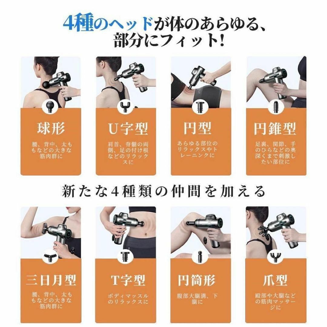 本製品の振動ヘッドは高品質の素材を採用して、4種類の振動ヘッド(球形、U形、円柱形、平形)が装備して、足から頬まであらゆる部位ににご使用いただけます。適切なヘッドを使用して強力な振動で全身をリラックスしましょう!ハイエンドな液晶ディスプレイのデザインで、電力レベルが一目でわかります。同時に、ディスプレイを通して、簡単にワンタッチの操作ができ、調整の段階も明確にわかります。