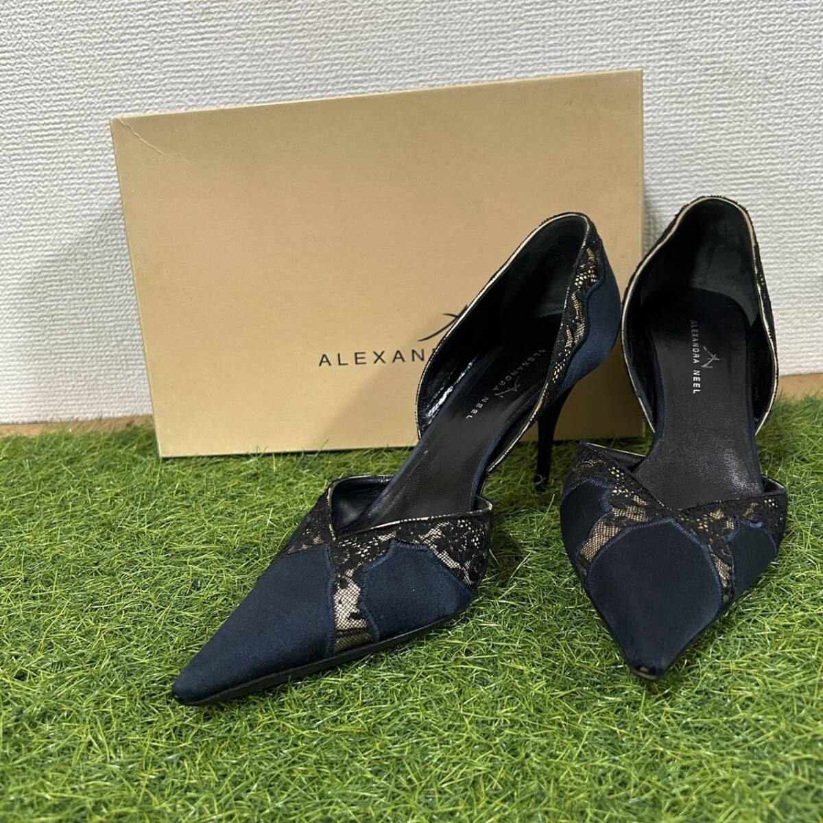 ALEXANDRA NEEL ポインテッドトゥパンプス サイズ:38 (約24.5cm) アレクサンドラニール レーシーセパレート ピンヒール ミュール 箱付き