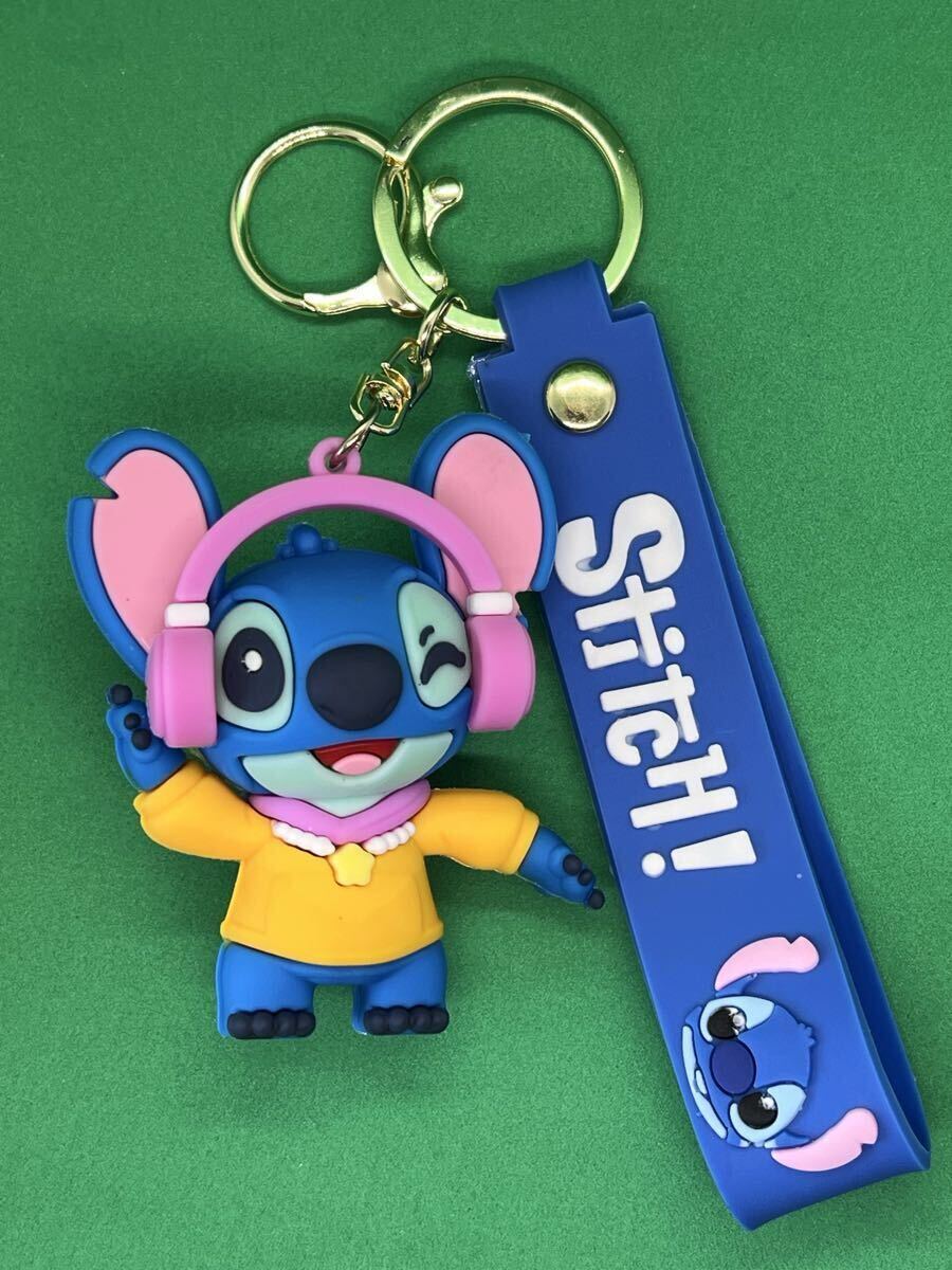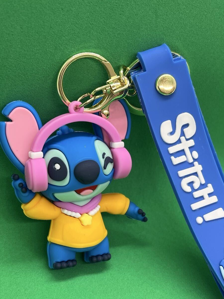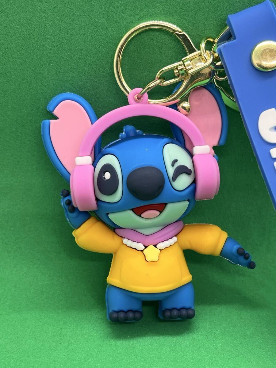 ヘッドフォンをつけたスティッチの可愛いキーホルダー。