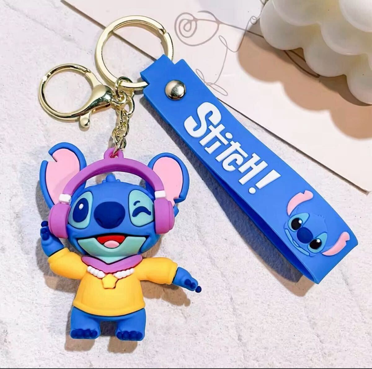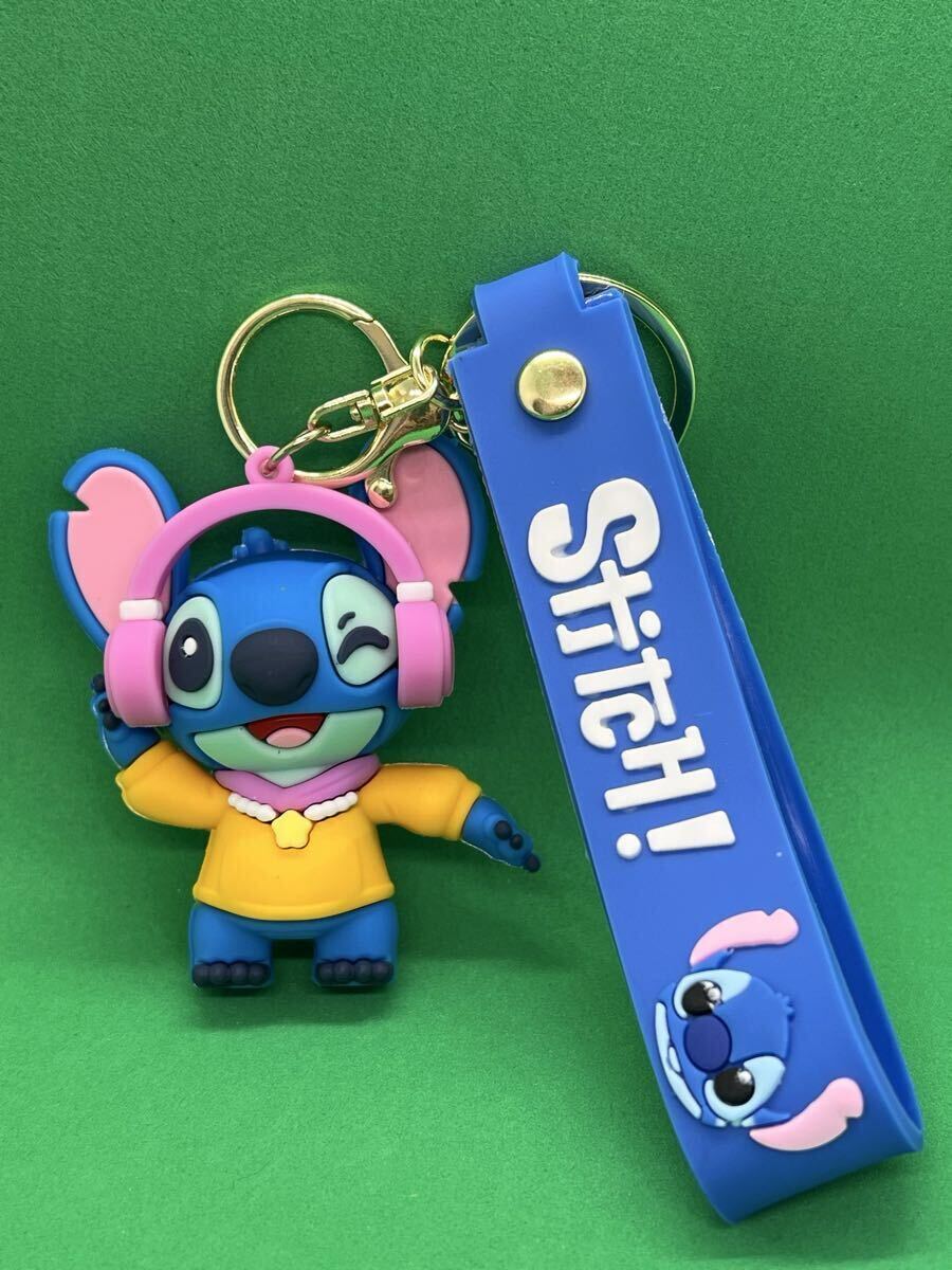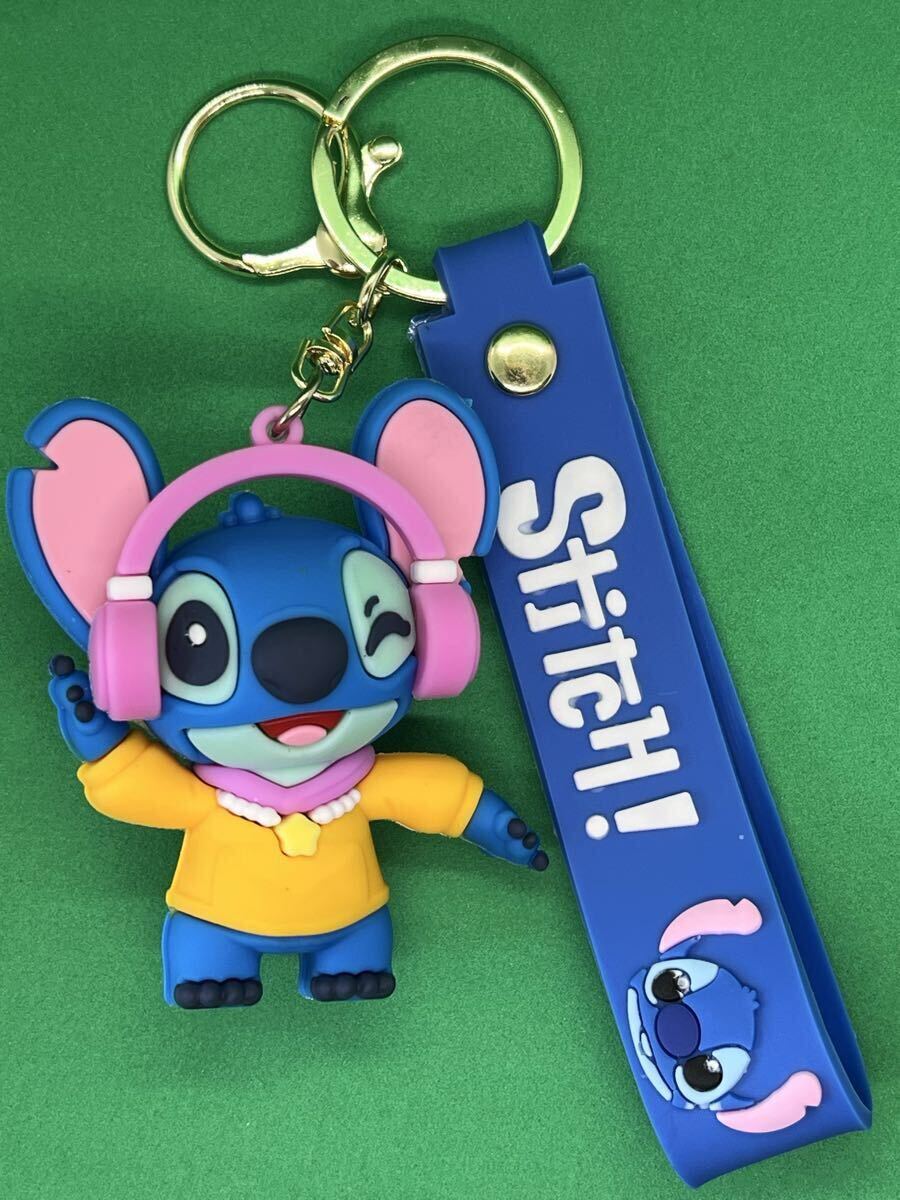 ヘッドフォンをつけたスティッチの可愛いキーホルダー。