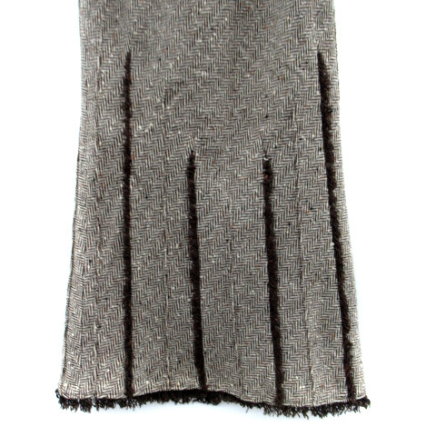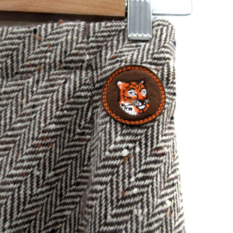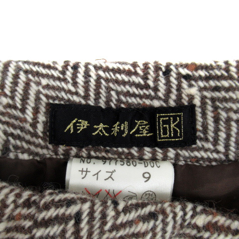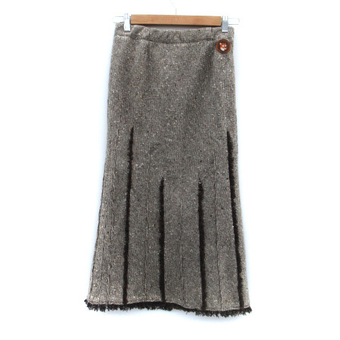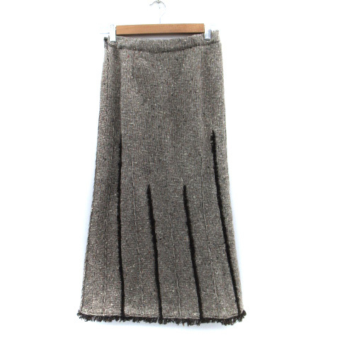 イタリヤ 伊太利屋 フレアスカート マキシ丈 ロング丈 ヘリンボーン柄 フリンジ 9 ベージュ 茶 ブラウン /SM31 レディース