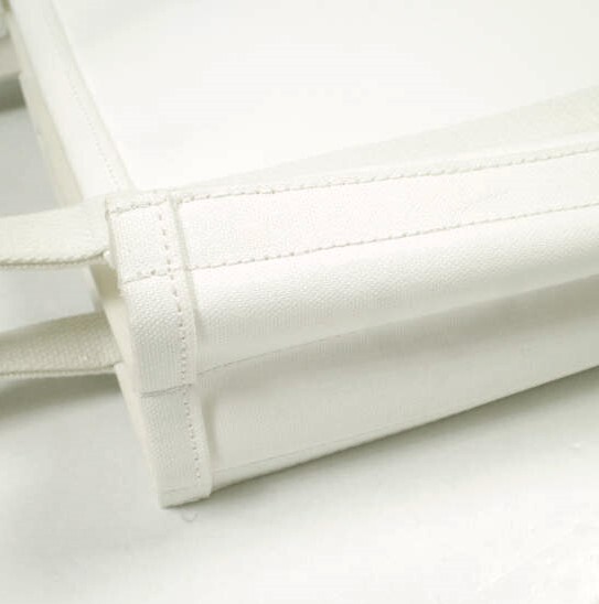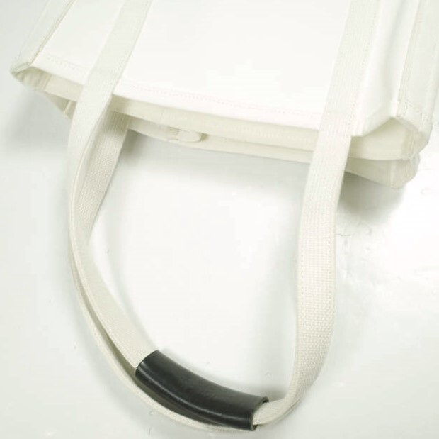 持ち手にはレザーのカバーが付き馴染みがよく、縁にテープを施し自立する形をキープしています。型崩れしにくく軽量化も図られていて洗練されたシンプルなデザインで必要性と美しいディティールを兼ね備えたバッグです。
