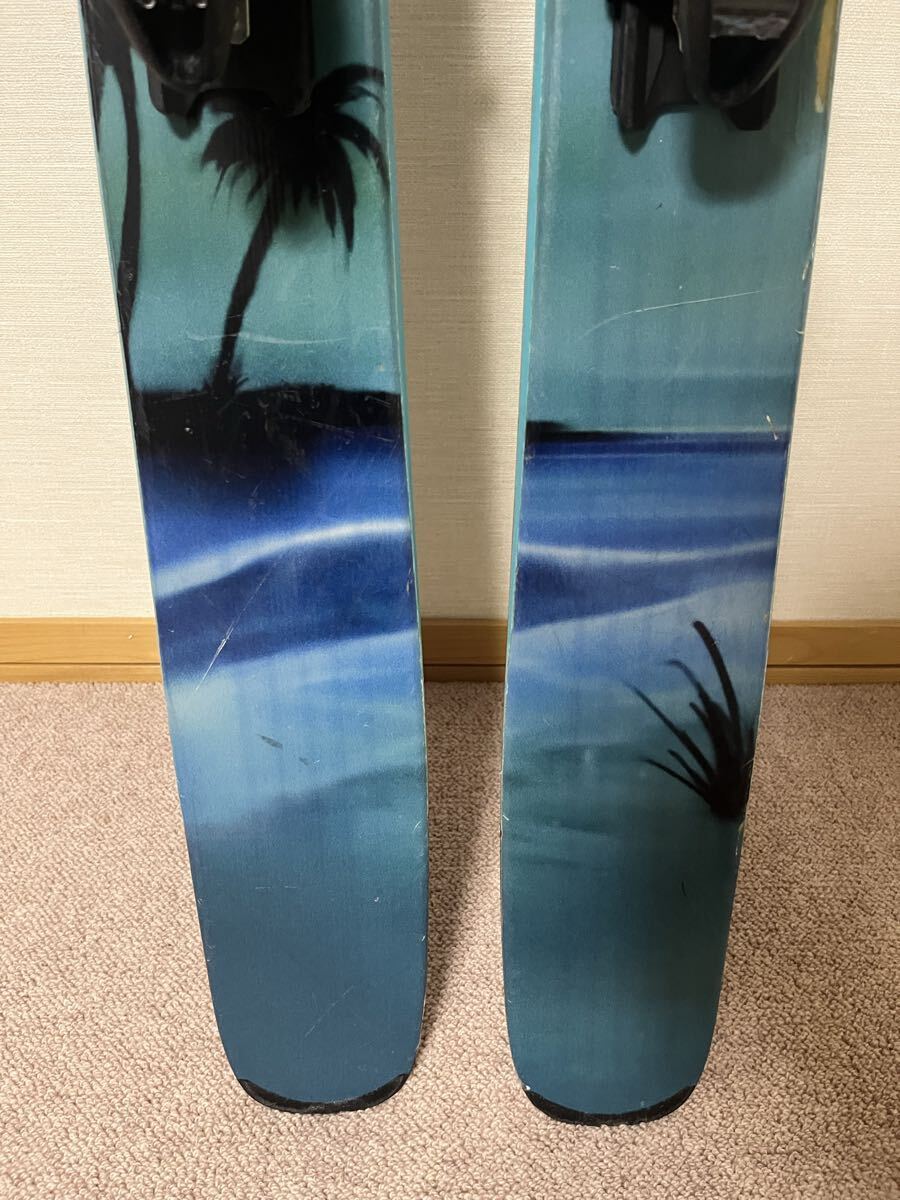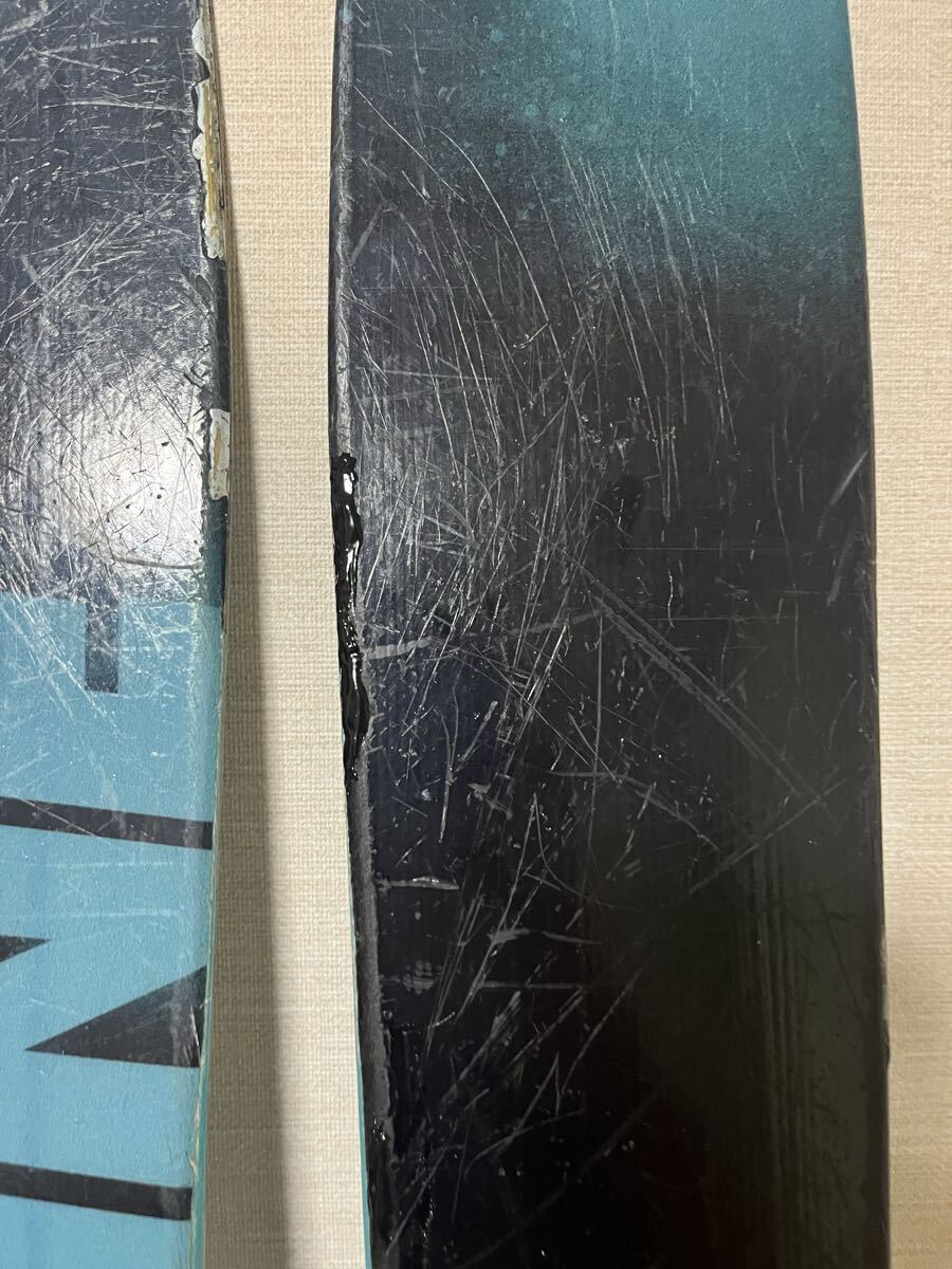 スキーの方はトップシート側はスキーどうしが当たり出来る傷があります。ソール側は細かい傷があります。トップシートの削れをエポキシで埋めてあります。気になる方は購入お控え下さい。