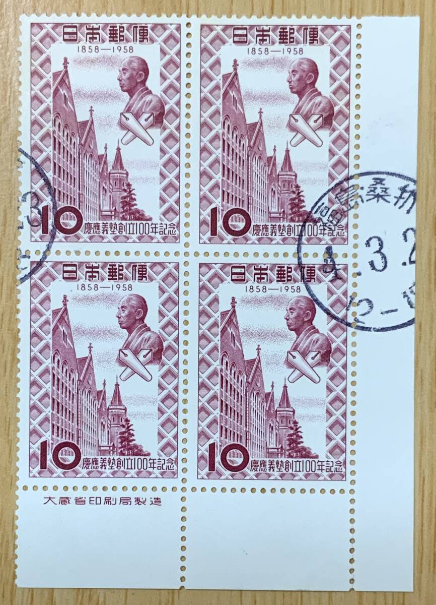 慶応義塾創立100年記念 10円 押印 ブロック K527