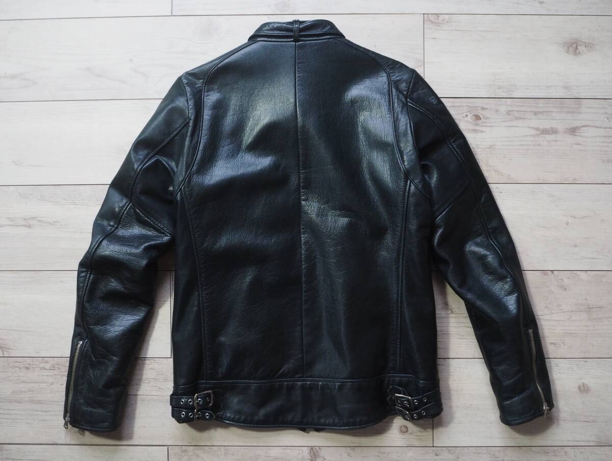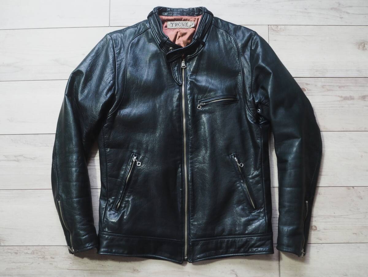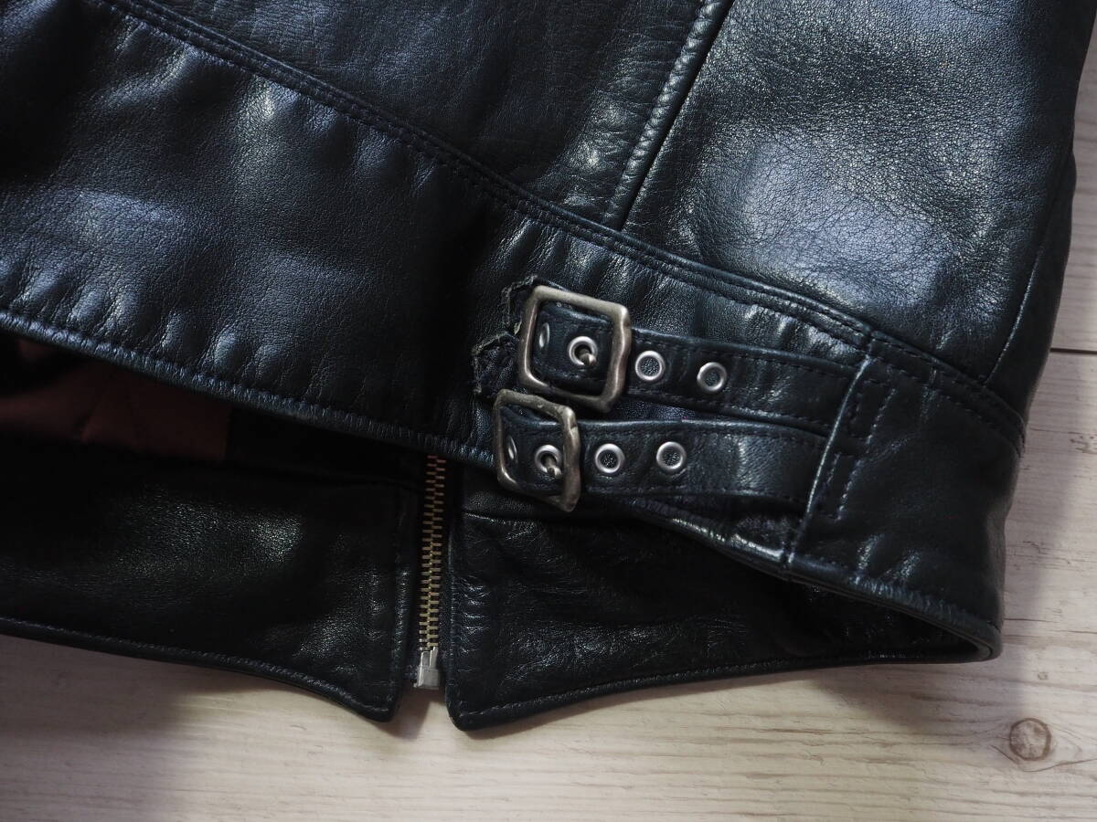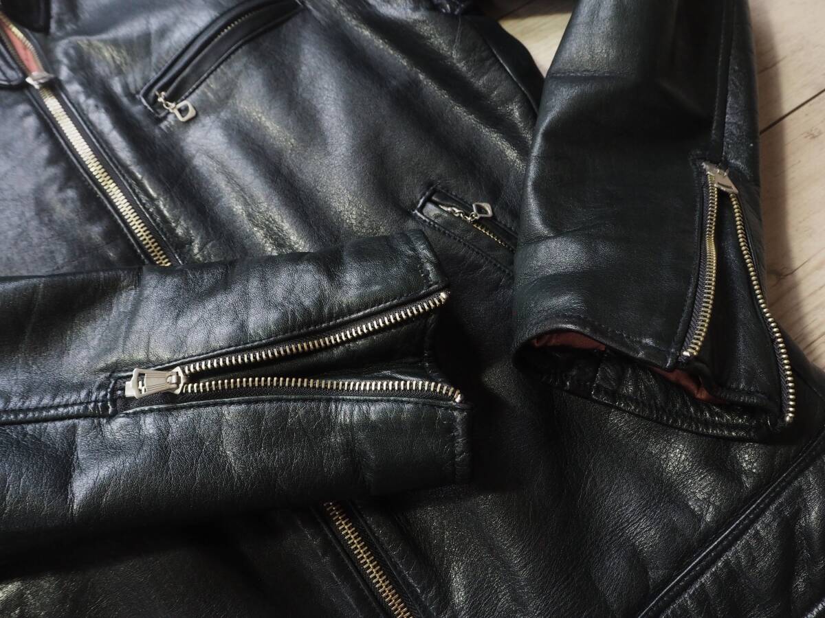 こちらはTROVE/トローヴ 本革レザージャケットです。 使用されるレザーはミディアムレンジの牛革で均一な厚さの上質クオリティ。80sメンバーズオンリーで見られる襟元や70sクラフトレザーのヨークをアクセントにシングルライダースでデザインされています。 裏地には贅沢に中綿入りのダイヤモンドキルティングを袖裏まで使用。 滑り良さは勿論、保温性にも優れ薄手インナー・オンの着こなしにも耐ええるクオリティです。 細部ディテールの拘りに加え、立体裁断でパターンされており着用際のシルエットも非常に綺麗な一着です。 TROVE/トローヴ 本革レザージャケット シングルライダース size - (日本人体型でM程度です。実寸参考にお願い致します。) 素材 本体 牛革 裏地 レーヨン・ポリエステル 中綿 ポリエステル系 WALDESチェーンジップ使用。 実寸 身幅 51cm 肩幅 42cm 着丈 66cm 袖丈 63cm コンディション 端部スレ等も極小で大変綺麗な一着です。レザー質感はとても良いです。 ジップ完動、裏地も綺麗です。 保管状態も良く気持ち良く着用して頂けます。 宜しくお願い致します。 |