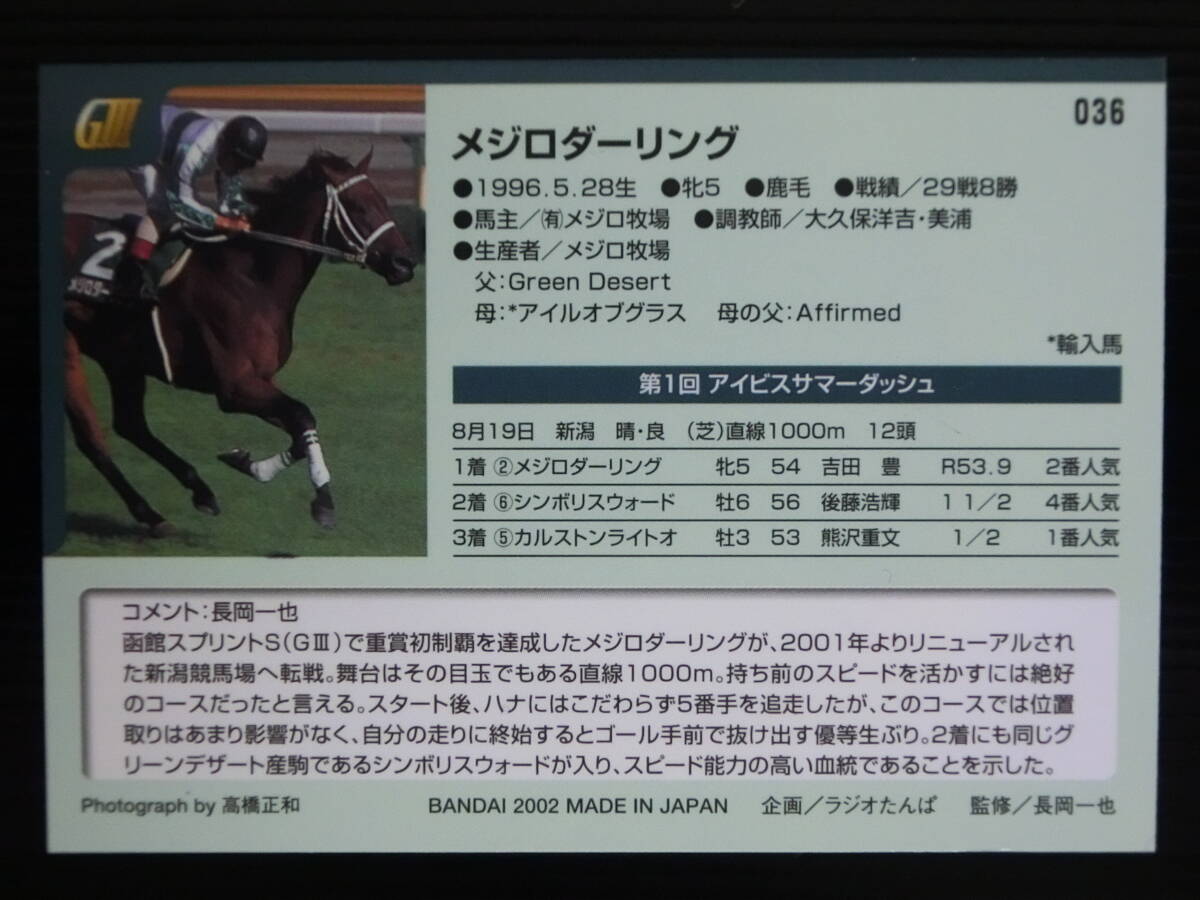 ★ メジロダーリング ★ 吉田豊 金文字サイン ★ '01 第1回 アイビスサマーダッシュ ★ BANDAI 2002 サラブレッドカード Mejiro Darling