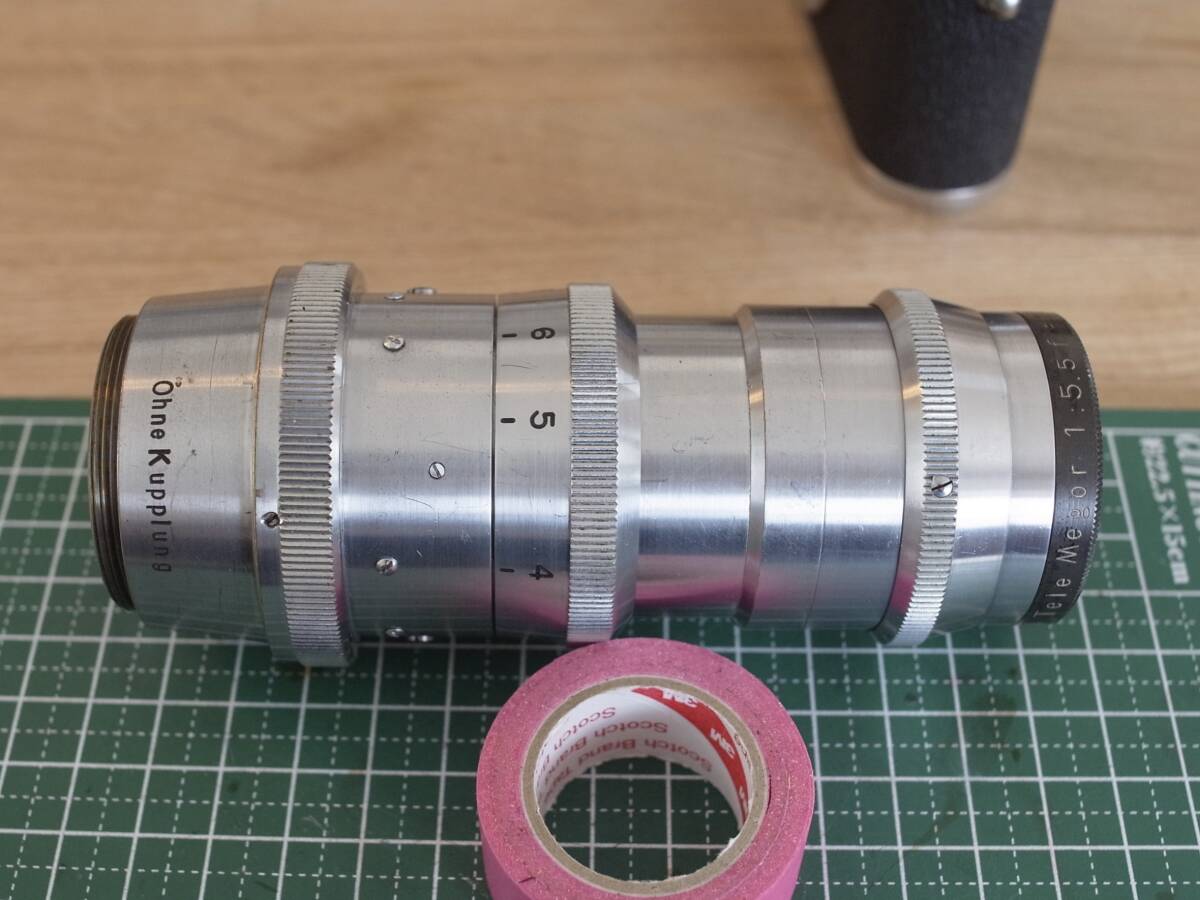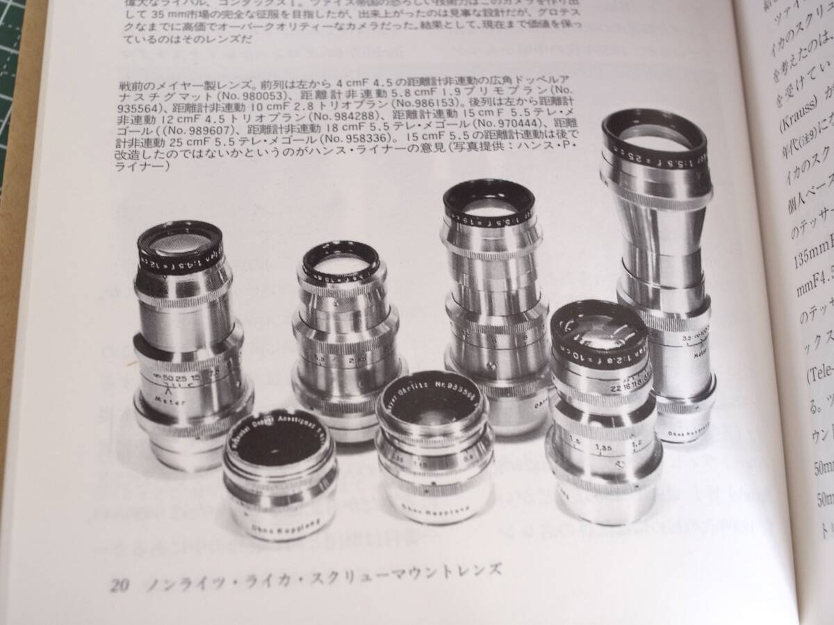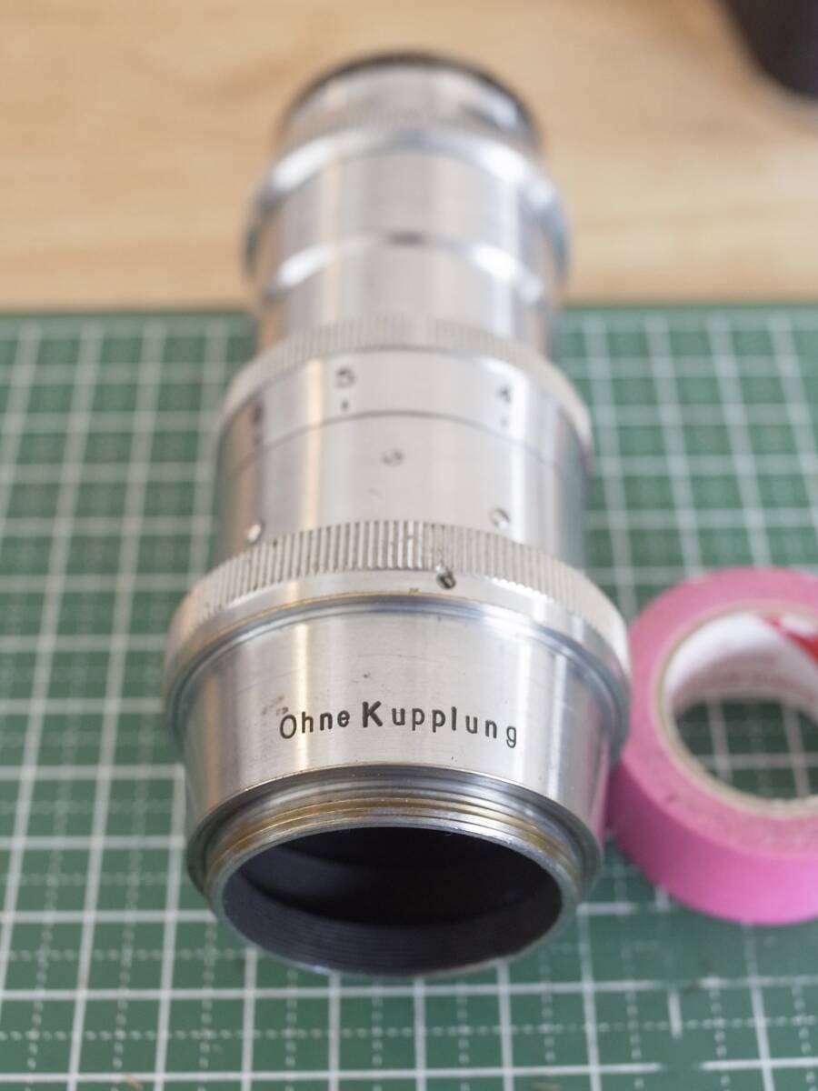 本品は、1930年代に同社がライカ向けにLマウント仕様で発売したシリーズ中の1本で、竹田正一郎の訳著「ノンライツ・ライカ・スクリューマウントレンズ」(画像8参照)にも掲載されているモデルです。距離計カムは非搭載で、マウント基部にもドイツ語で”Ohne Kupplung“=非連動と刻印がありますので、フィルム撮影時に近距離撮影などで厳密なピント合わせを行う際には単体距離計(画像7参照)を併用する必要がありますが、デジタルカメラで実ピントを確認しながら撮影する場合には通常のマニュアルレンズと同じ使い勝手ですので、距離計は不要です。