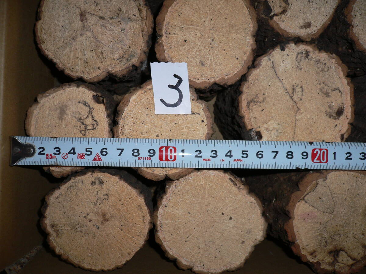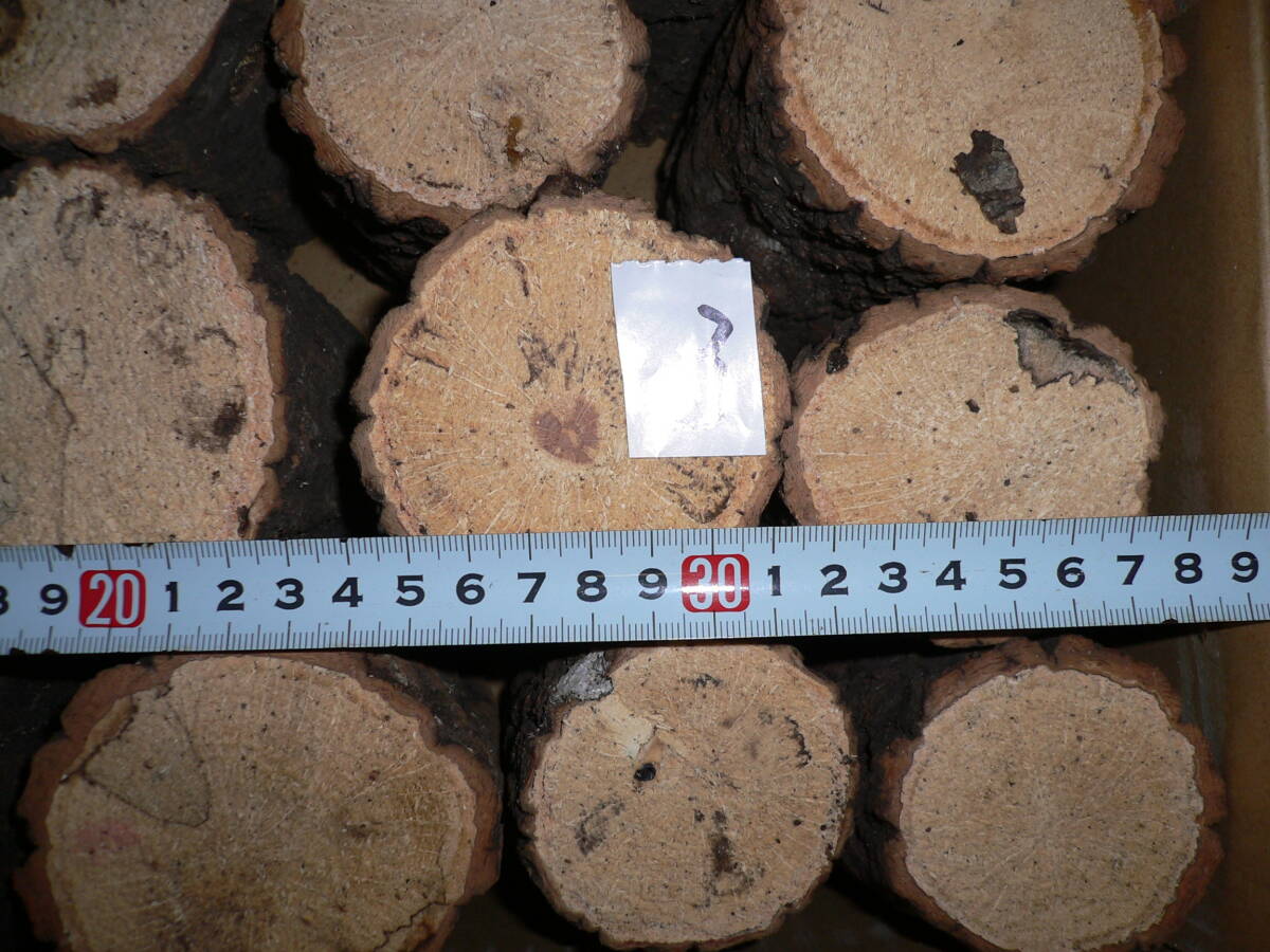 直径6-8㎝のクヌギ25です。爪で抑えると1-3ミリ入ります。硬めの木が多いです、