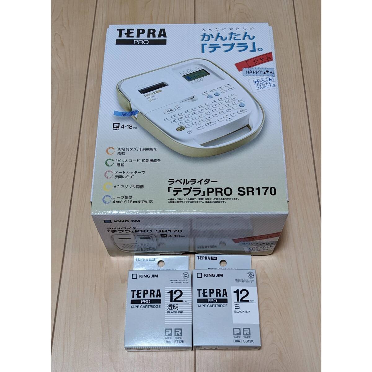 > KING JIM キングジム ラベルライター TEPRA PRO テプラプロ SR170 白・透明12mmテープ2本付 新品