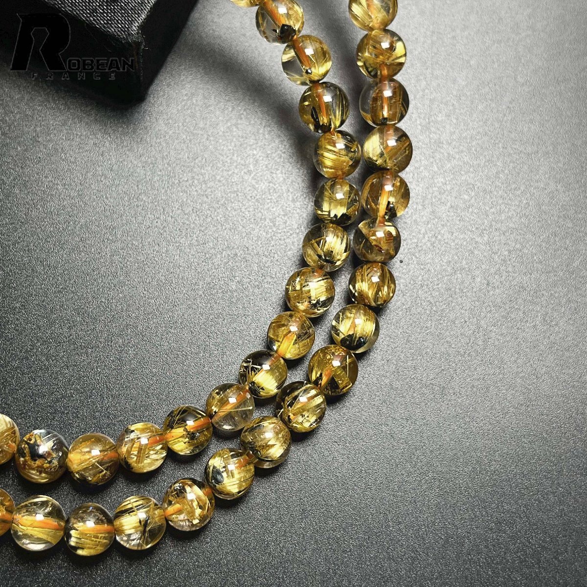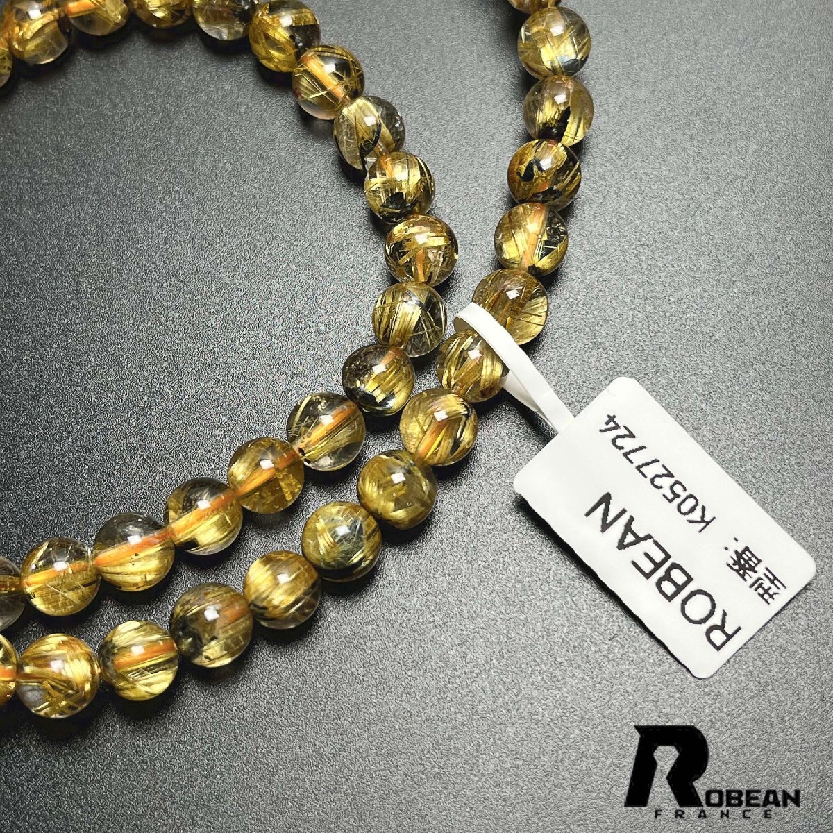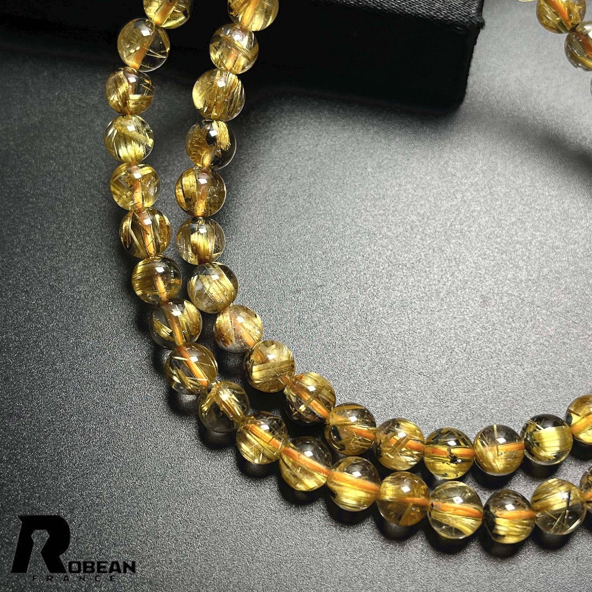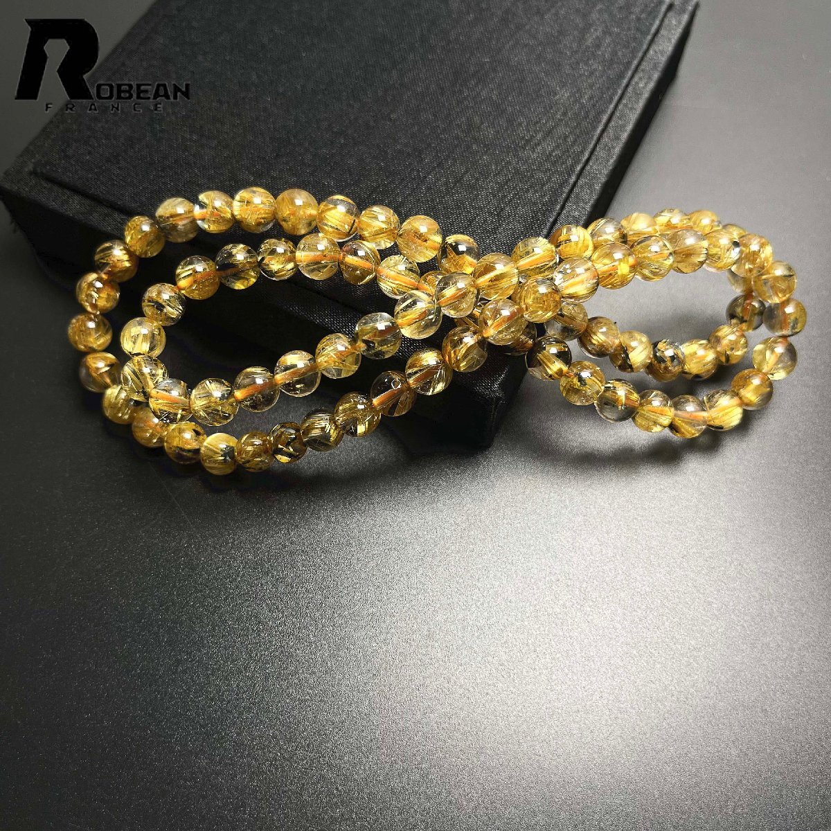 貴重 EU製 定価114万円★ROBEAN・太陽花タイチンルチル★黄金針水晶 金運 開運 ゴールド 3本巻きブレス パワーストーン 6.2-7.3mm