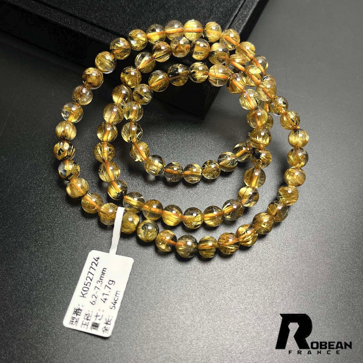 貴重 EU製 定価114万円★ROBEAN・太陽花タイチンルチル★黄金針水晶 金運 開運 ゴールド 3本巻きブレス パワーストーン 6.2-7.3mm K0527724