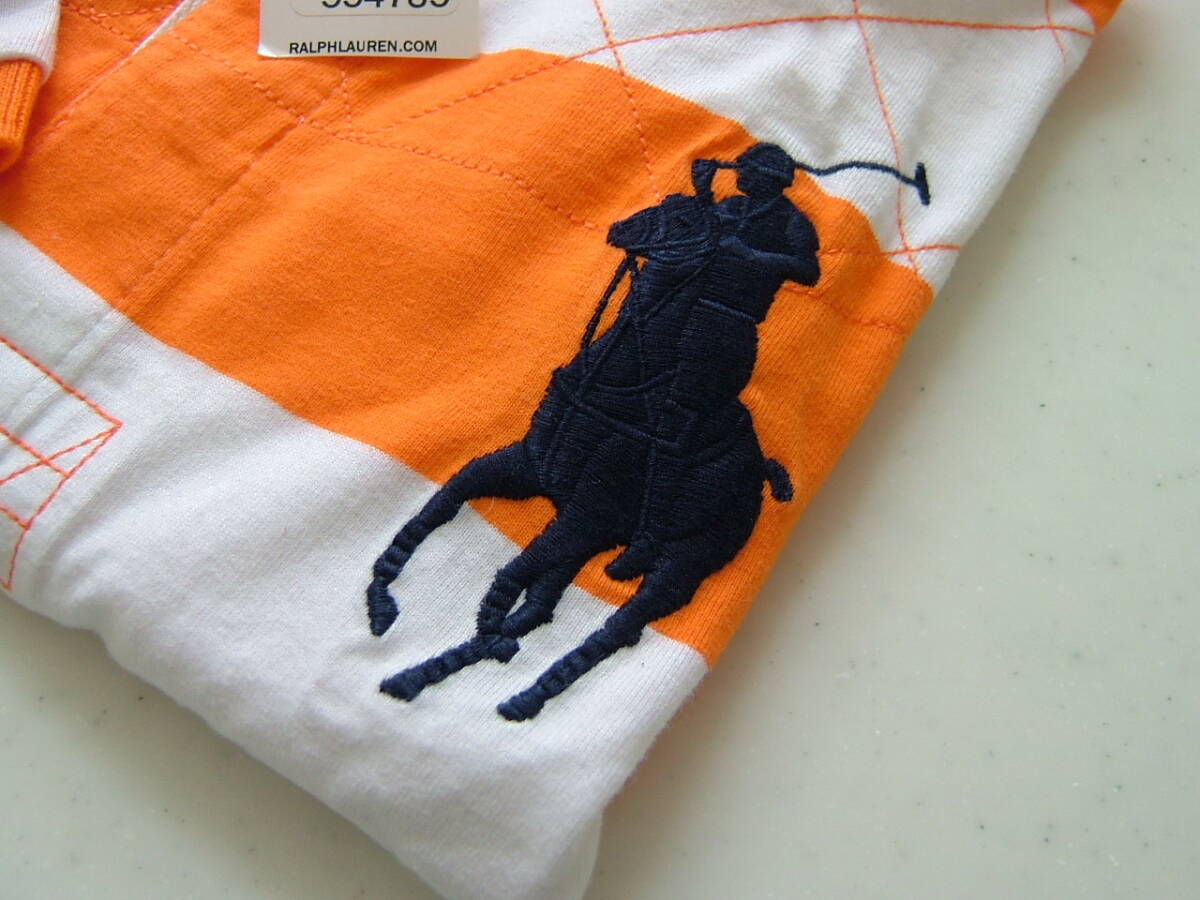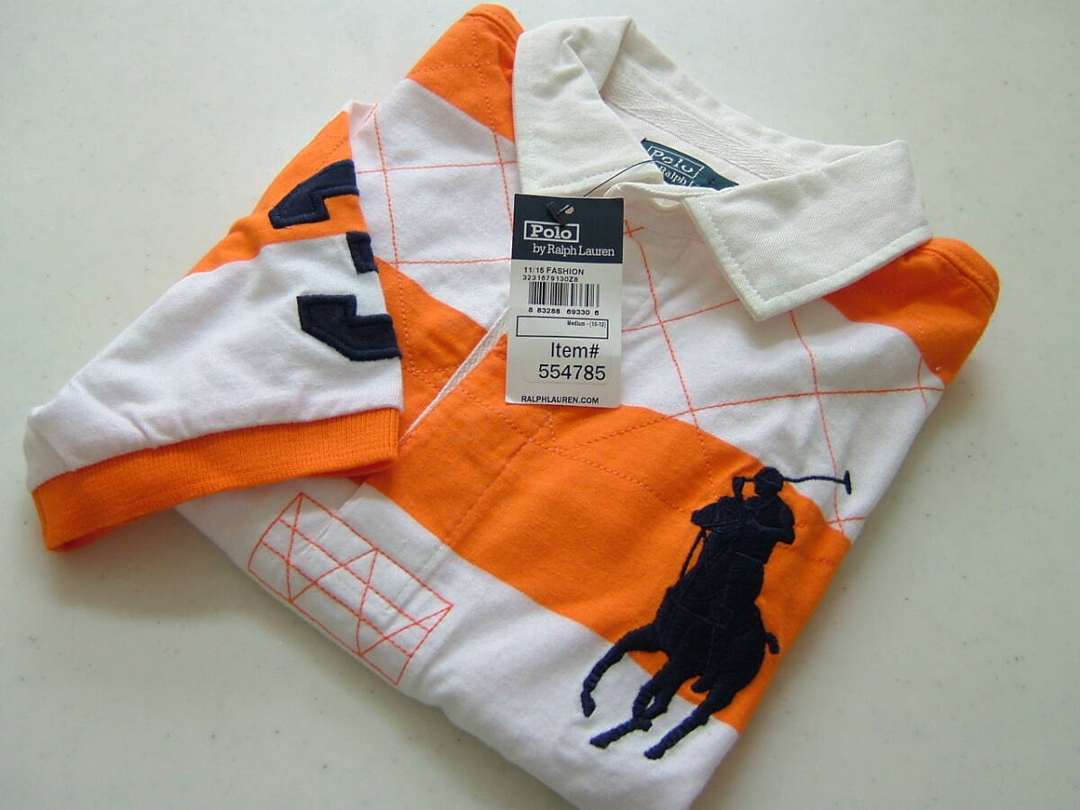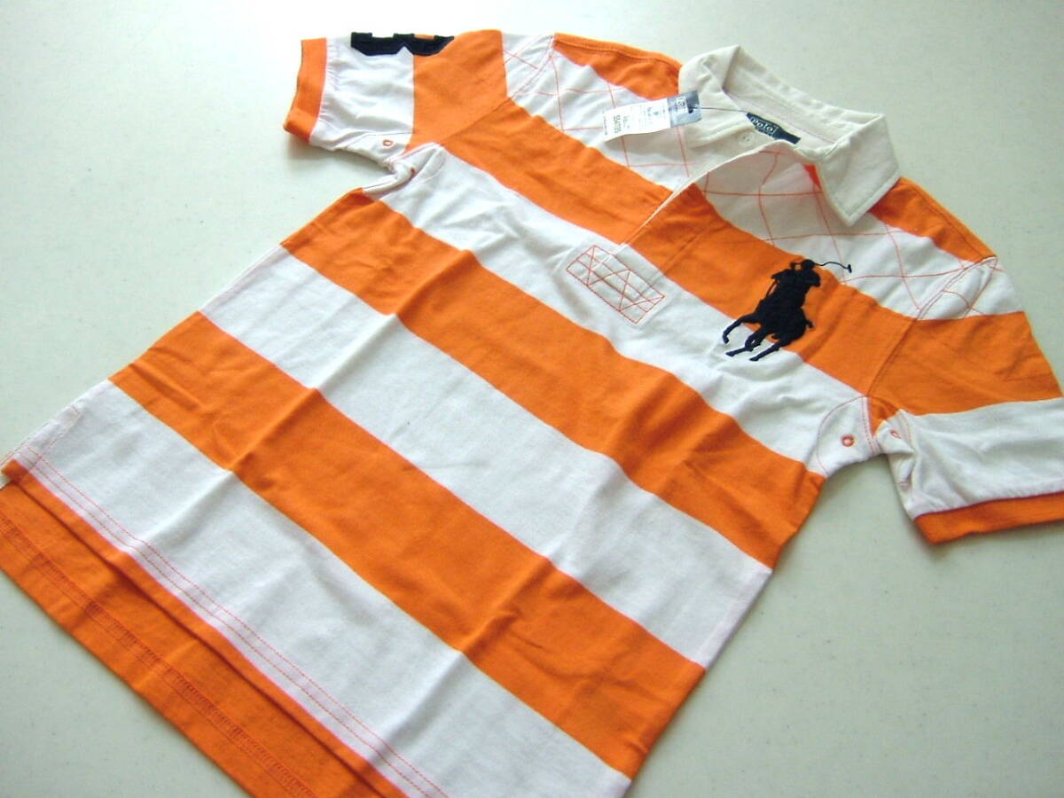 新品 ラルフローレン RALPH LAUREN 子供 ジュニア ビッグポニー ラガー ポロシャツ 半袖 M150 ホワイト オレンジ 送料無料 10-12