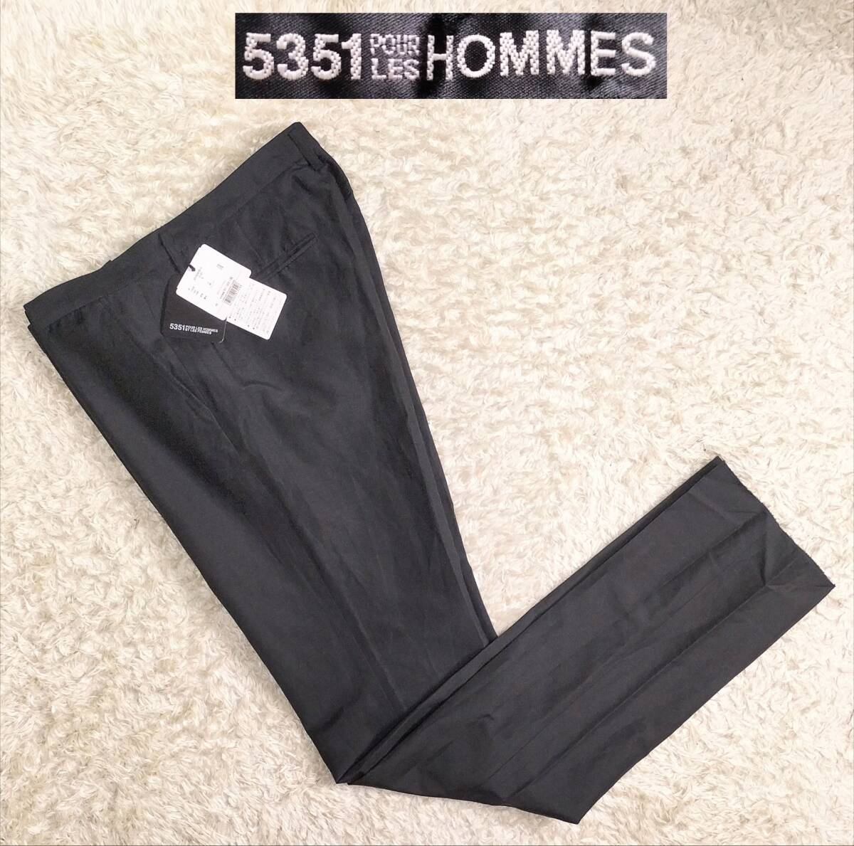 【未使用★】サイズ4 5351 POUR LES HOMMES ウールリネン トラウザーパンツ/黒●定価17,000円☆プールオム (9171)