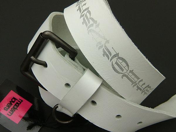 新品 モダンラヴァーズ 銀ロゴ入レザー本革ベルト白 535