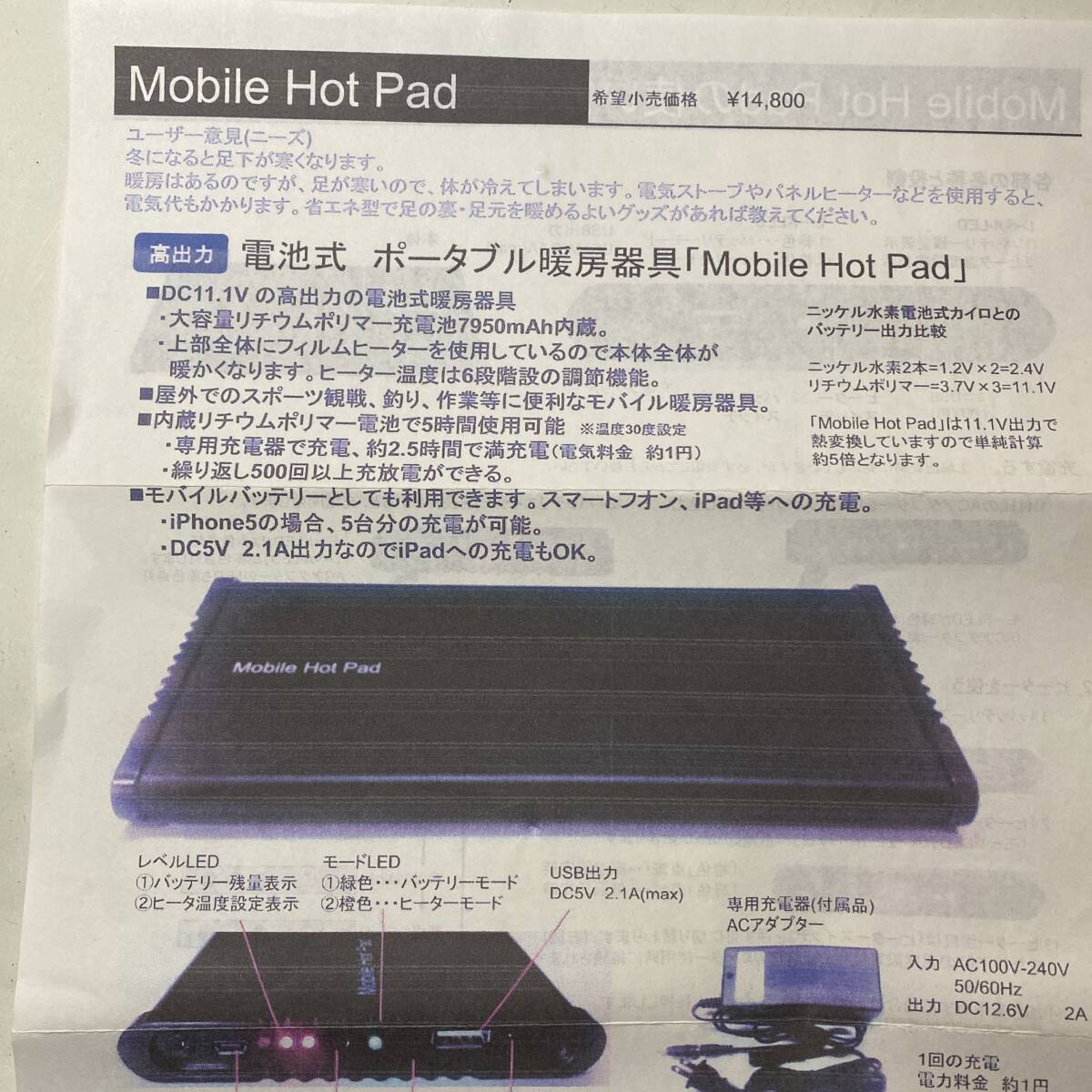 超美品、ポータブル暖房器具 Mobile Hot Pad :