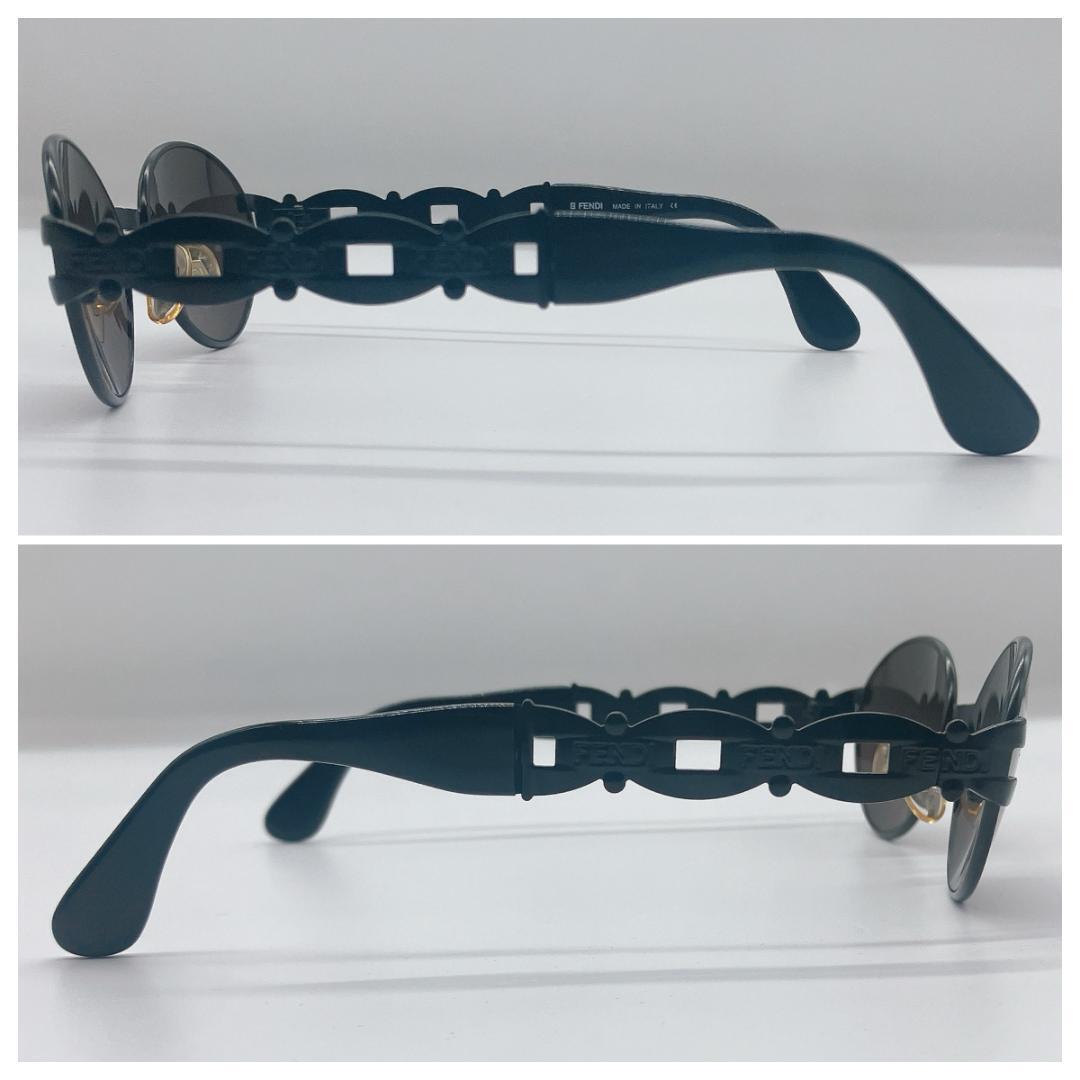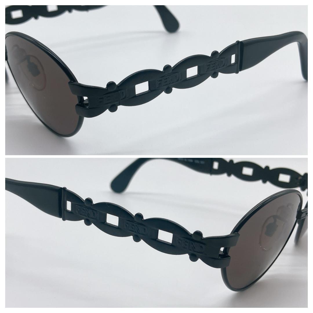 FENDIのブラックオーバルサングラス、ブラウンレンズ付き。