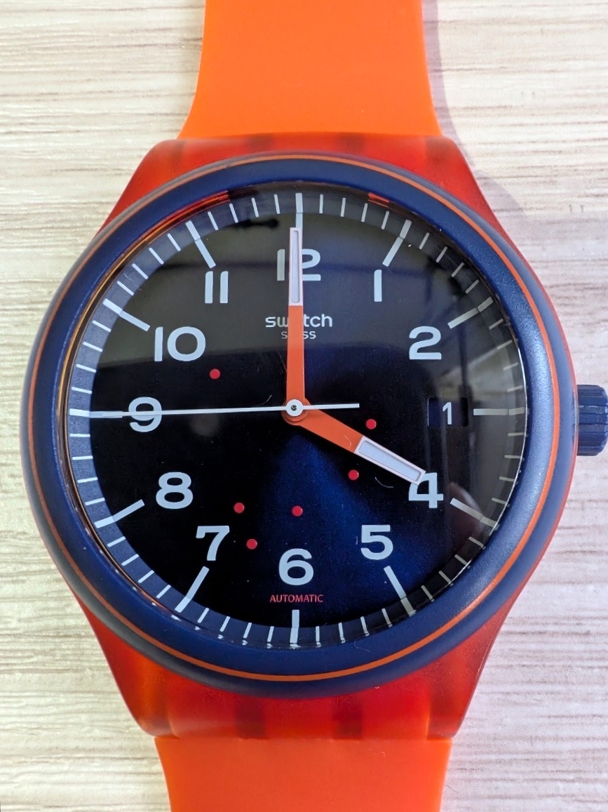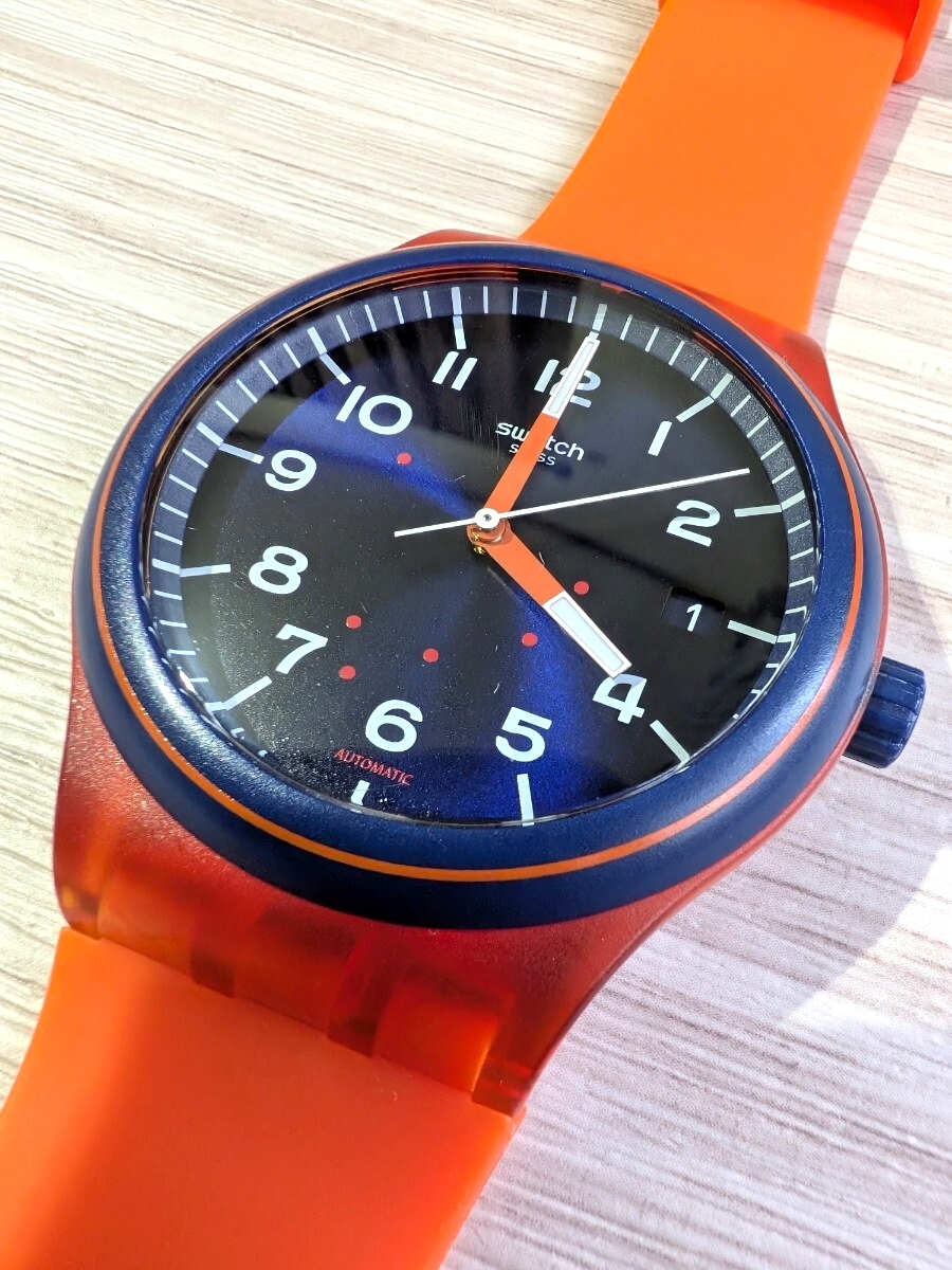 スウォッチのシステム51 TANGERINE SUTO401 です。