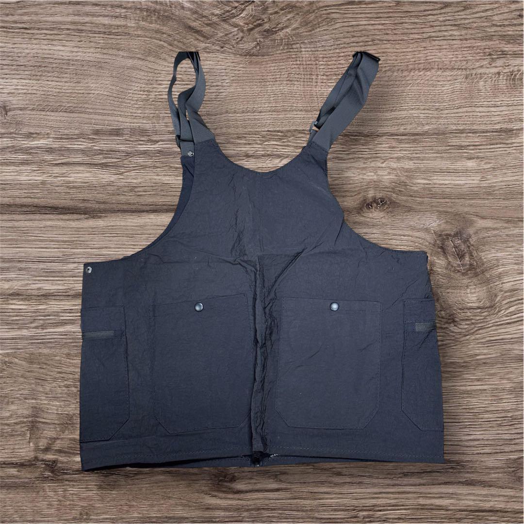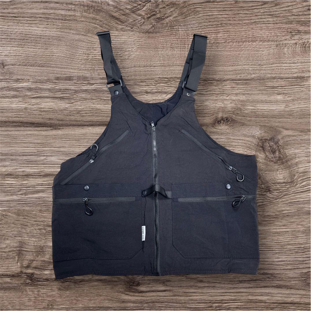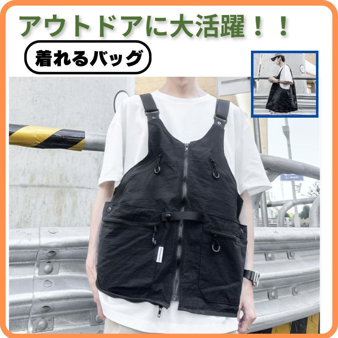 軽量でジッパー付きのブラックベスト、アウトドアに最適。
