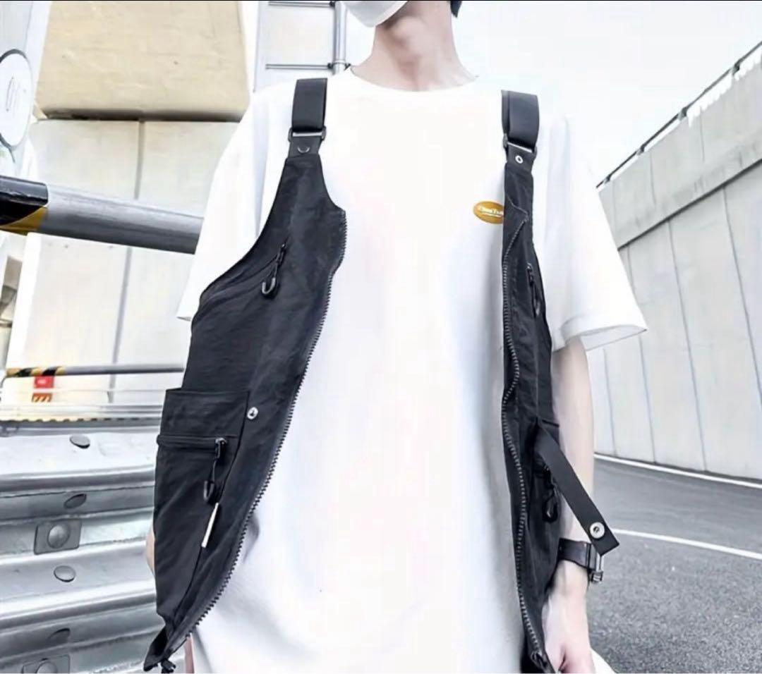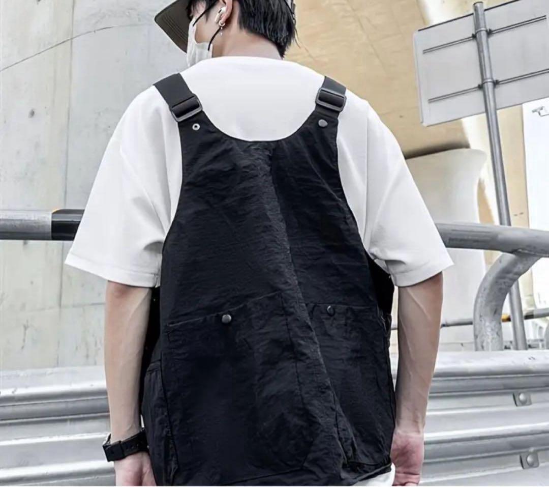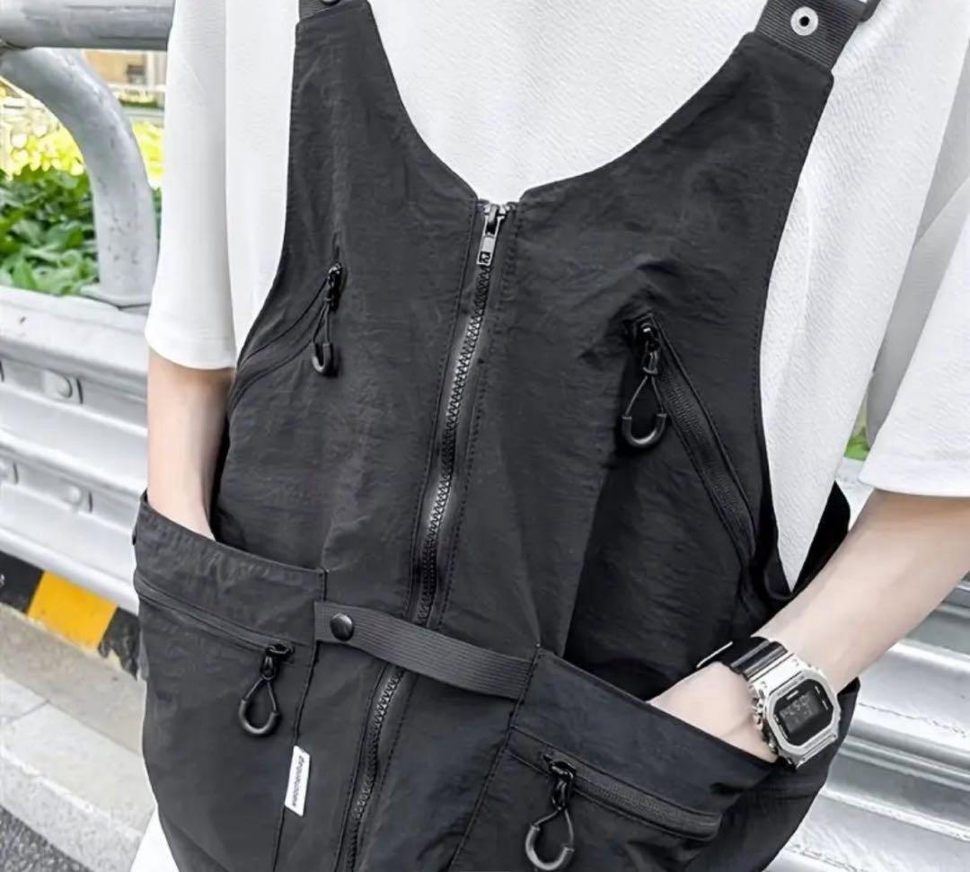 軽量でジッパー付きのブラックベスト、アウトドアに最適。