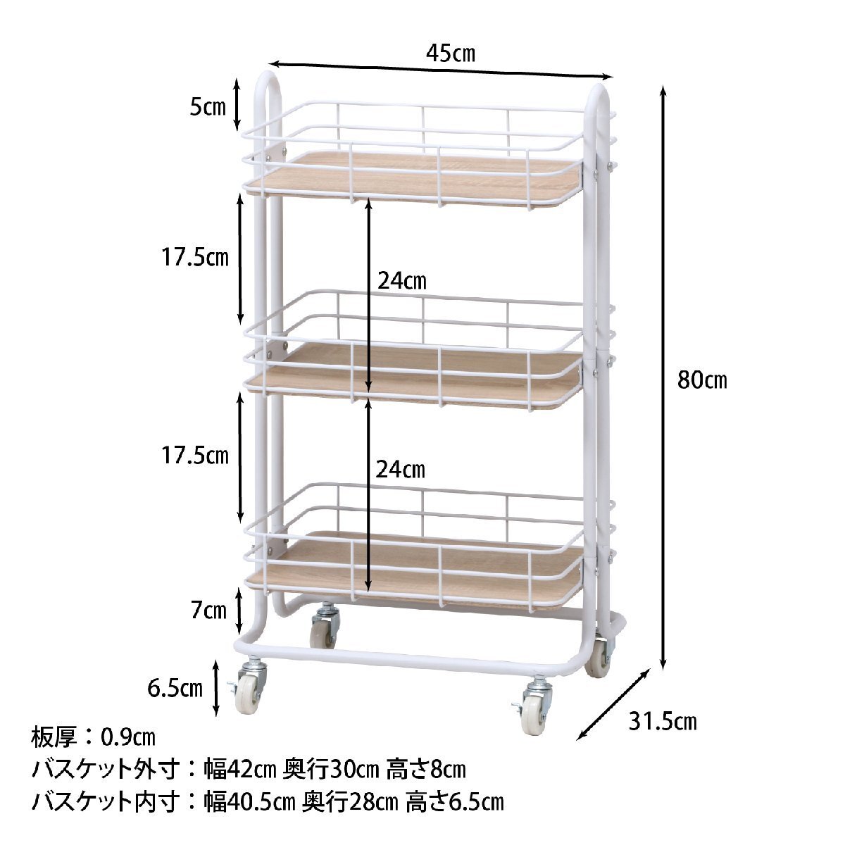 | サイズ | 全体:幅450 × 奥行315 × 高さ800mm 耐荷重(バスケット):5kg 板厚:9mm ※サイズ詳細はサイズ画像をご参照ください。 |