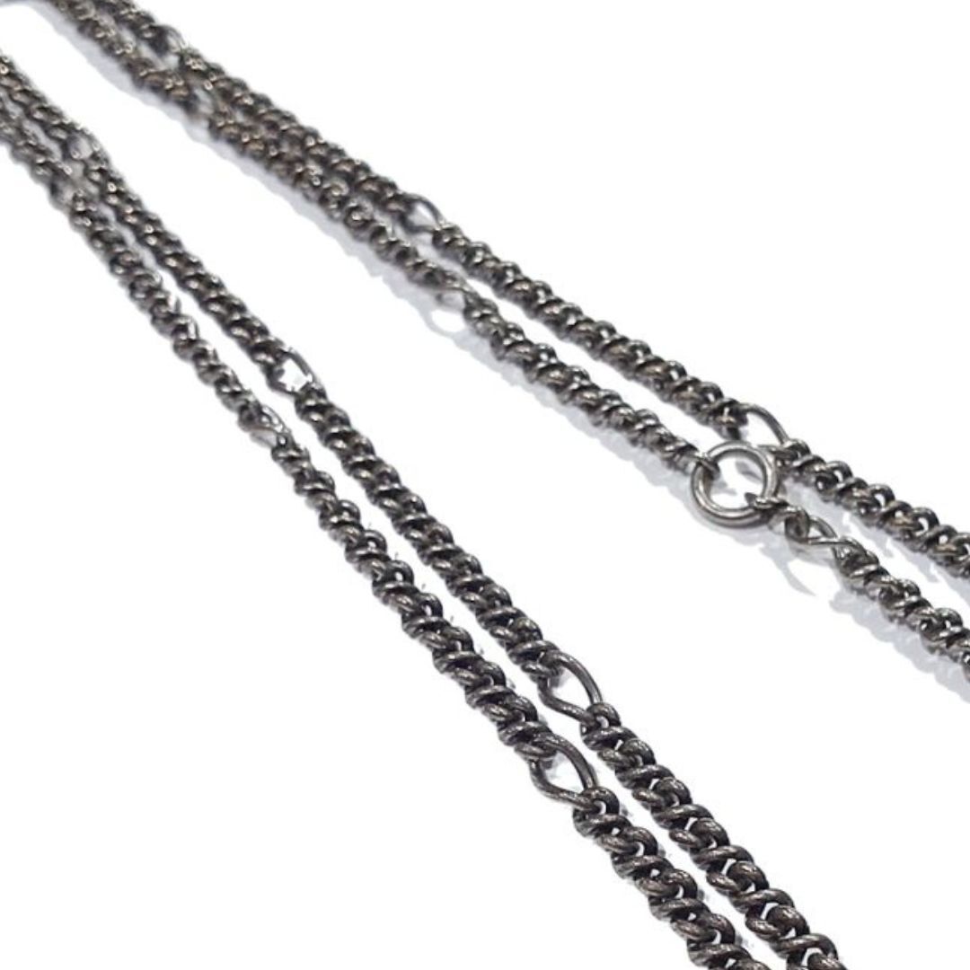 チェーンは2箇所に丸カンがついていますが、それ以外にも約4.5㎝ごとに少し大きめのあずきチェーンが配置されており、そこに留め金具をフックして長さを変える事が可能です(写真6、9枚目参照)。