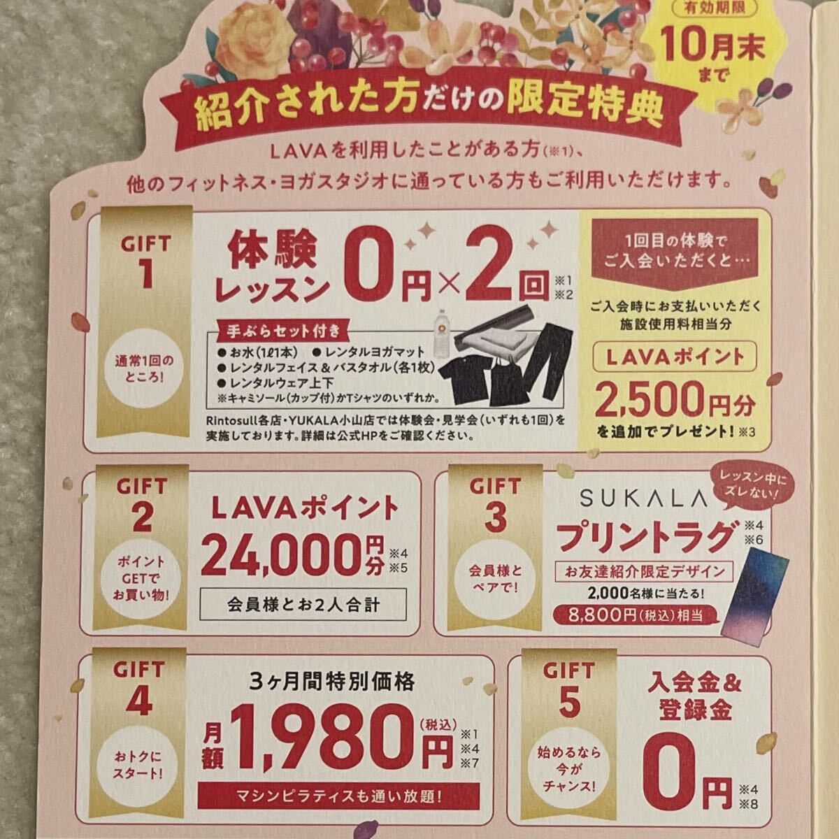 ホットヨガ LAVA 体験無料 紹介 入会特典チケット