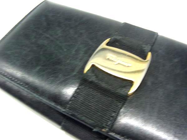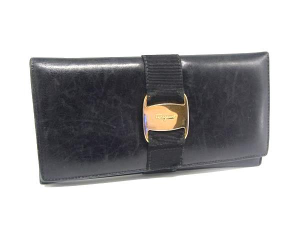 Salvatore Ferragamo フェラガモ ヴァラ 二つ折り 長財布 ウォレット 札入れ 小銭入れ カード入れ レディース ブラック系 DH0178