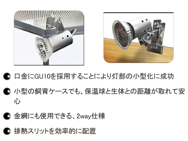 ●小型の飼育ケースでも、保温球と生体との距離が取れて安心