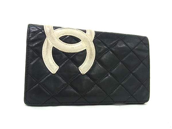 1円 CHANEL シャネル カンボンライン ラムスキン 二つ折り 長財布 ウォレット 札入れ 小銭入れ ブラック系×アイボリー系 FV1860